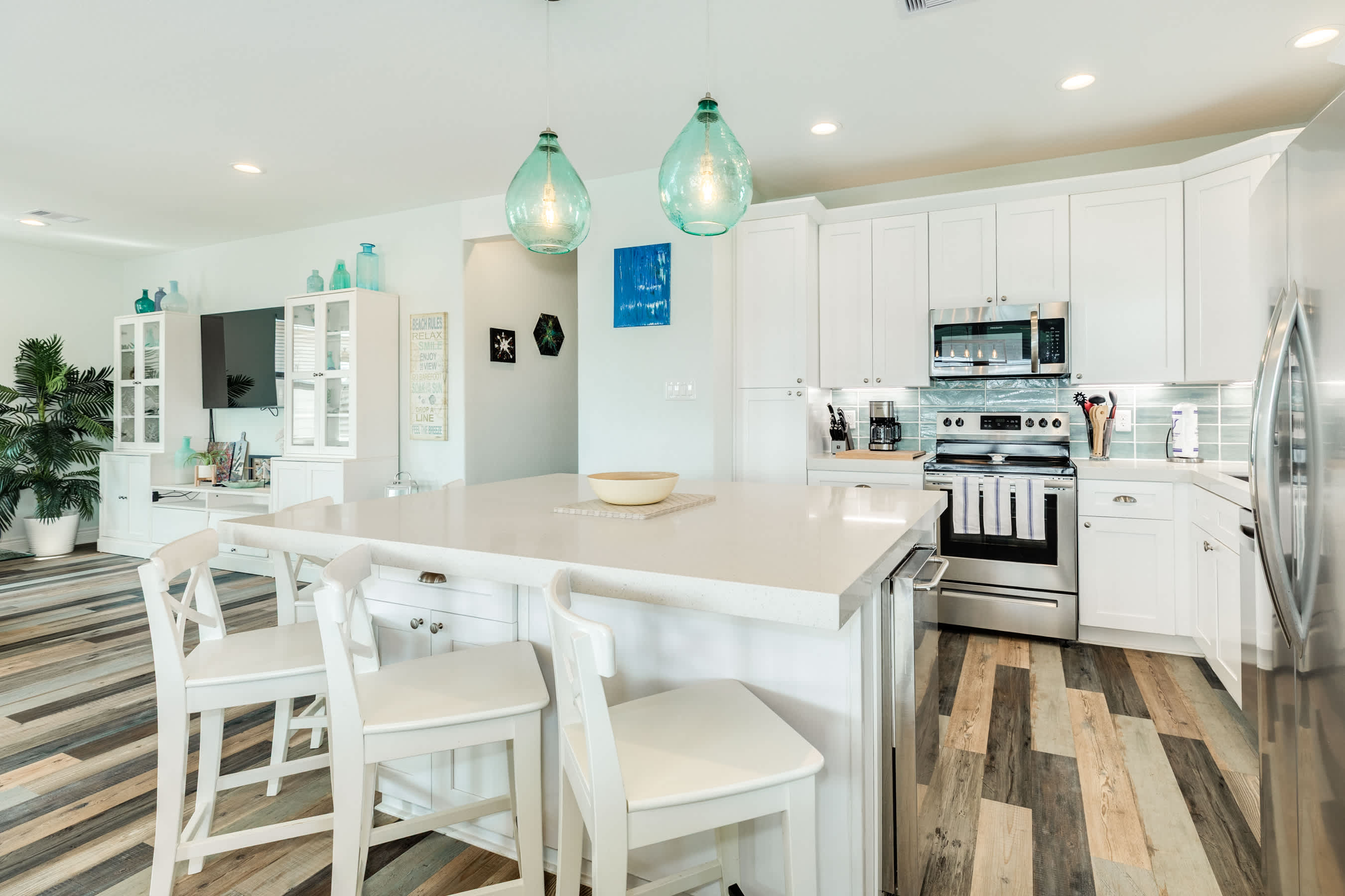 Sleeping 10 guests comfortably, it’s ideal for families and friend groups looking to unwind by the sea with a pup en tote. Just an easy stroll to the main beach entrance, you’ll be toes-in-the-sand in minutes. Rinse off in the outdoor shower after a beach day, then kick back and enjoy the salty breeze—because here, every day feels like vacation.