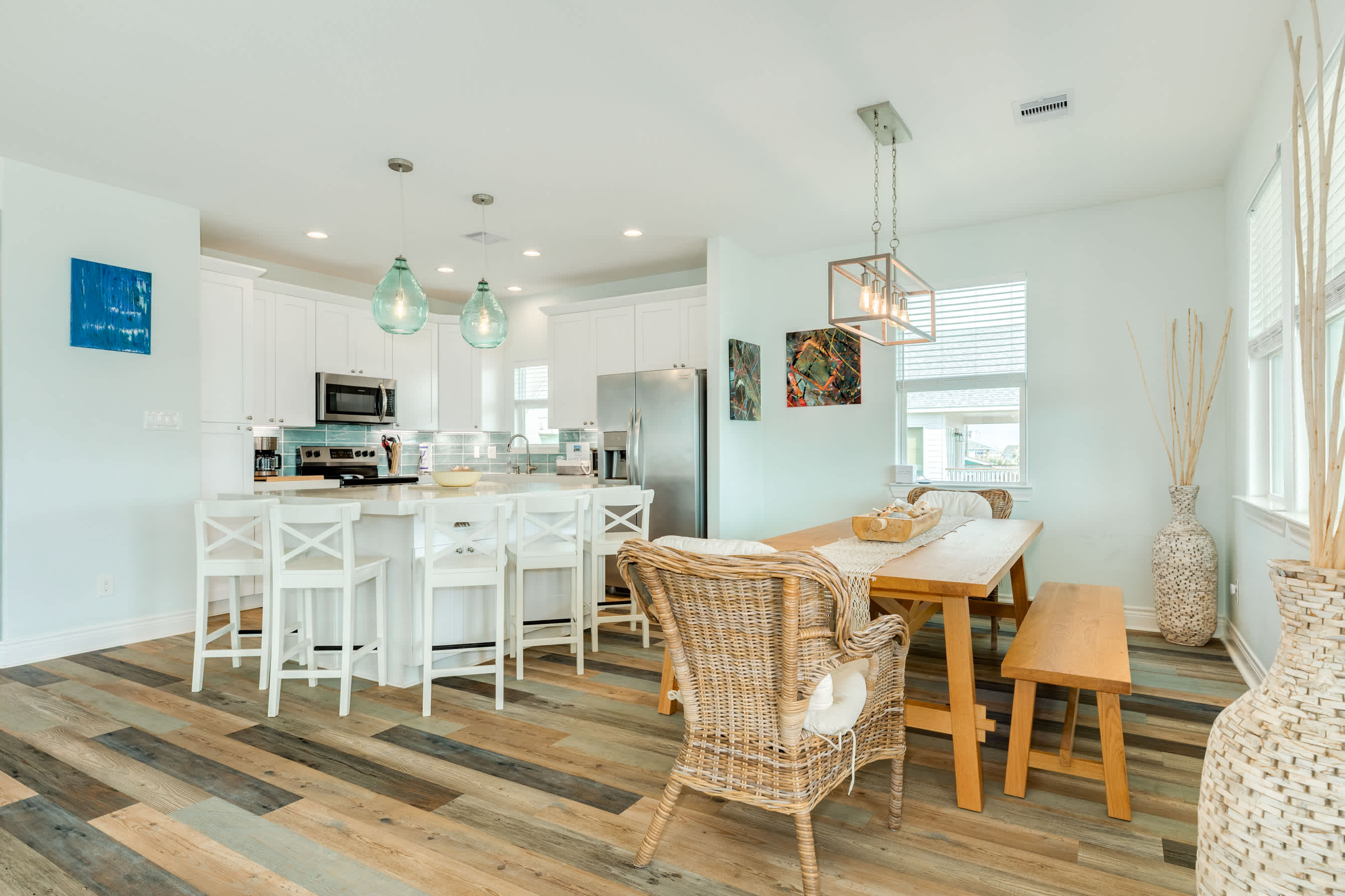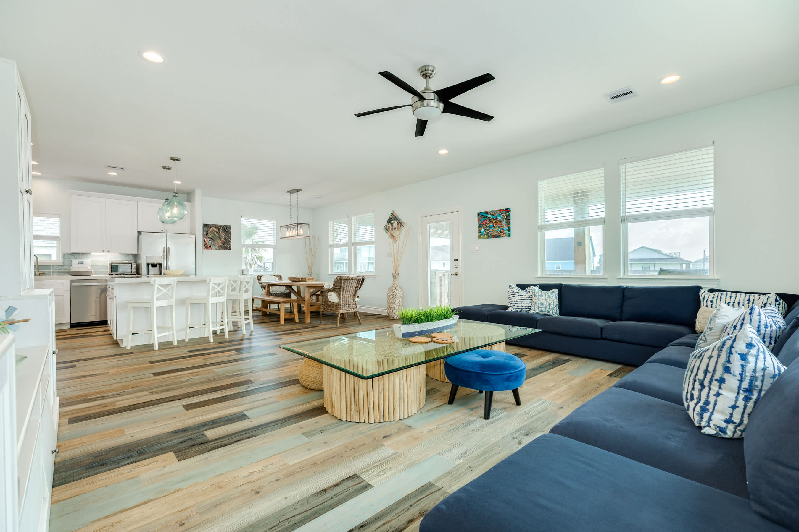 This bright and breezy coastal cottage is the perfect blend of style and comfort. With a spacious open floor plan, classy beach-chic décor, and extensive decks perfect for lounging or dining al fresco, this newer beach home is built for seaside memory-making.