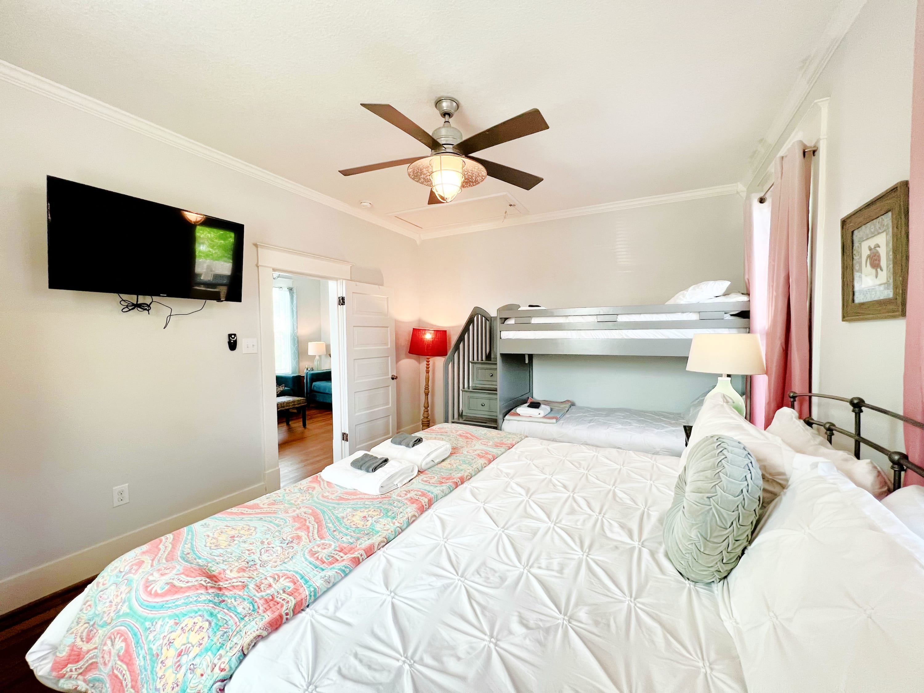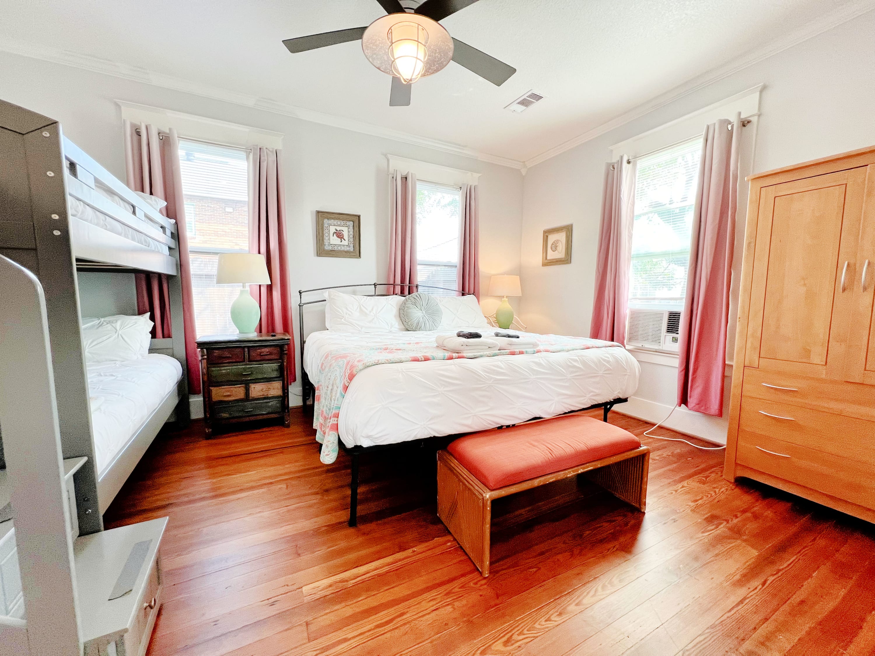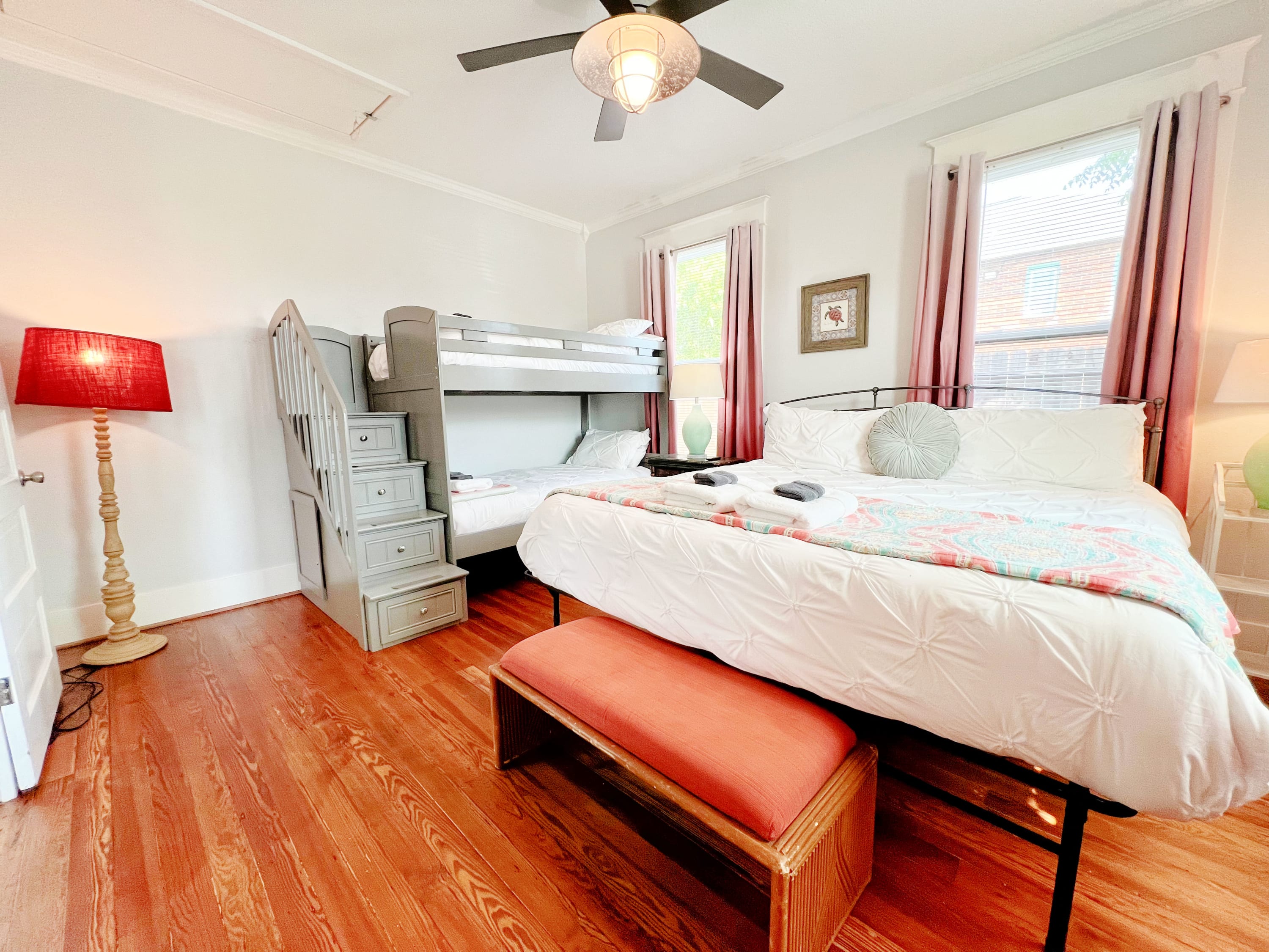 ~ Primary Bedroom with King bed and Twin over Twin bunk bed