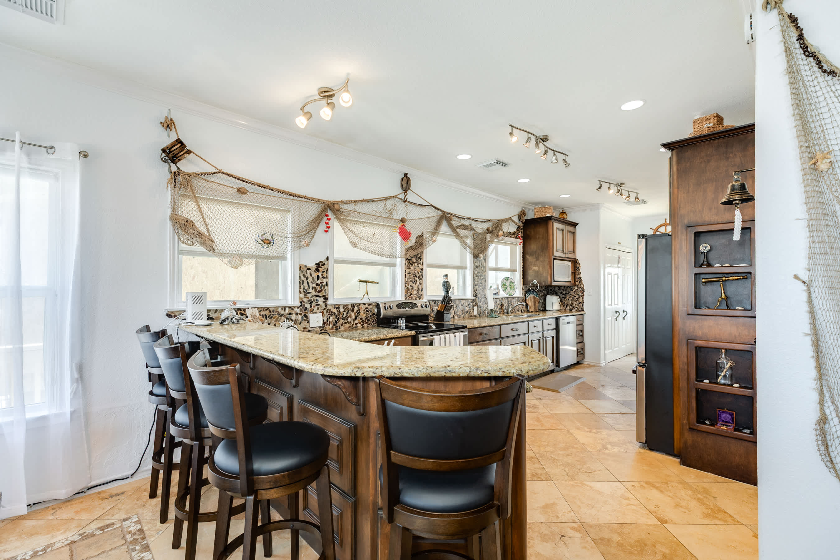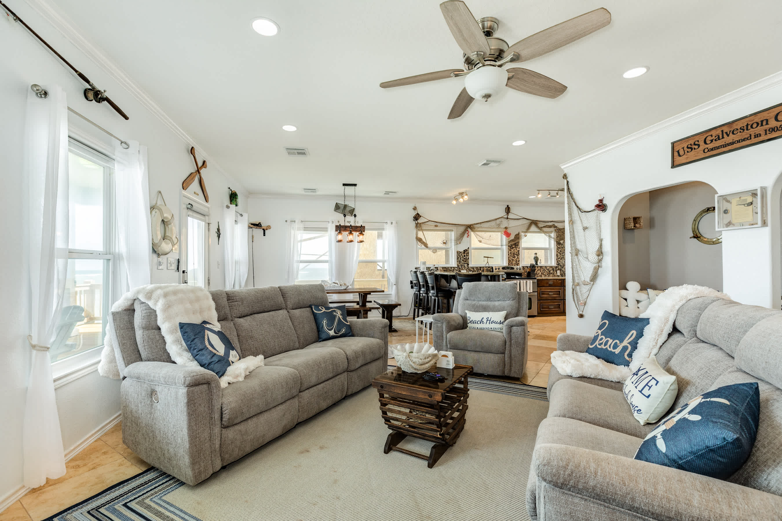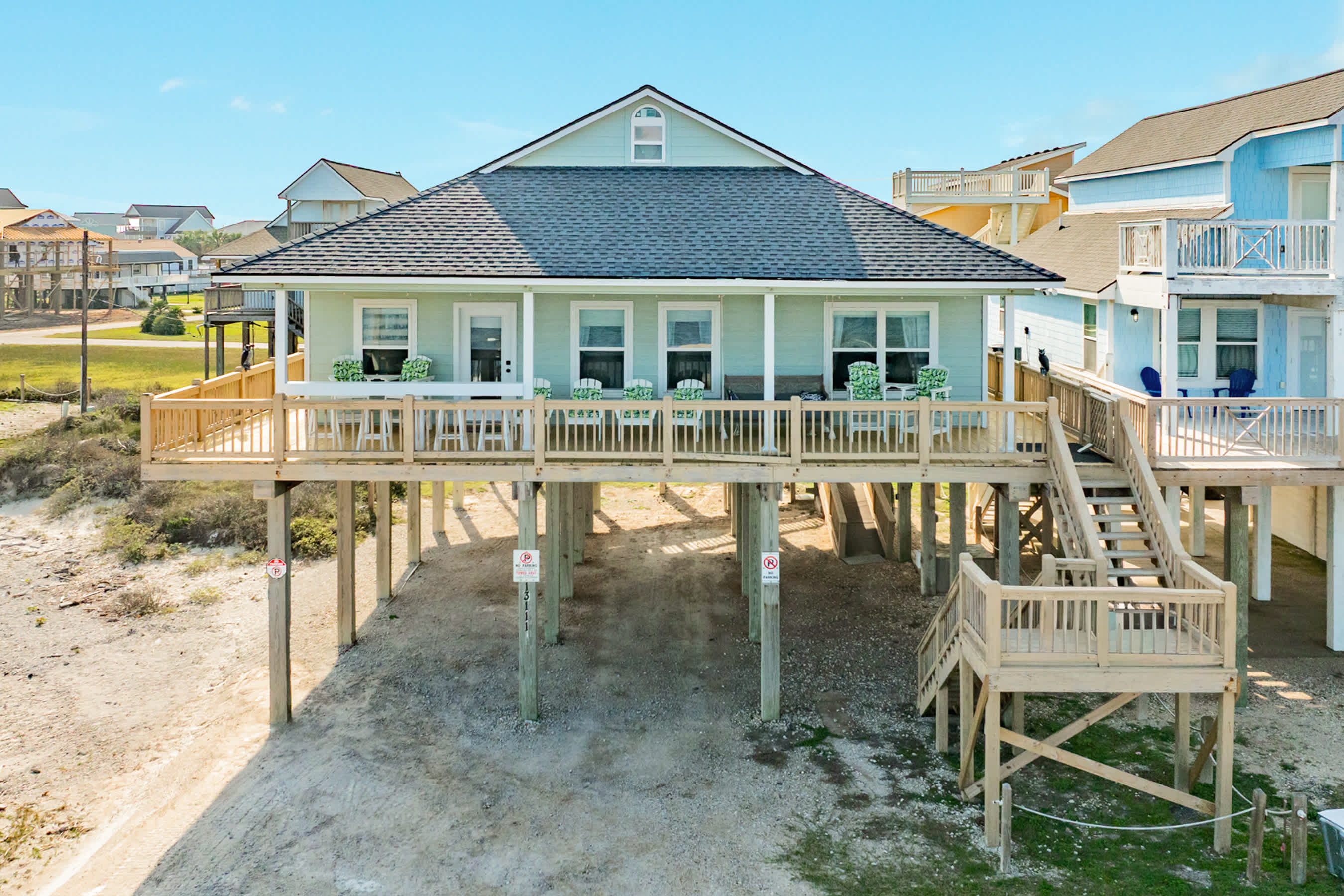 NEW ADDITION! Perched like a front-row seat to the ever-changing coastline, this beautiful Treasure Island beach getaway is all about the views. From sunrise over the Gulf to boats drifting through San Luis Pass and the bridge stretching across the horizon, this home delivers a constant, cinematic backdrop.
