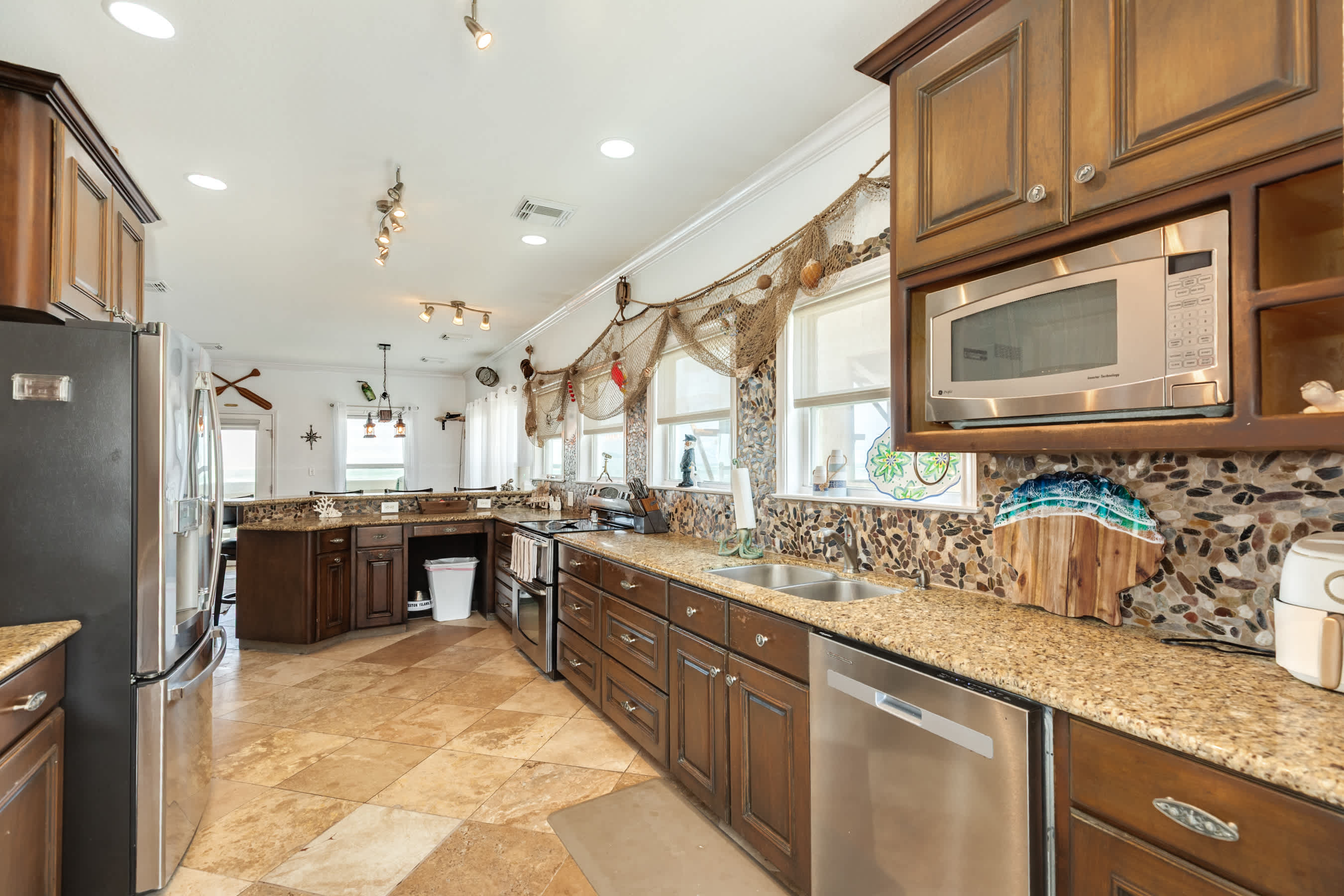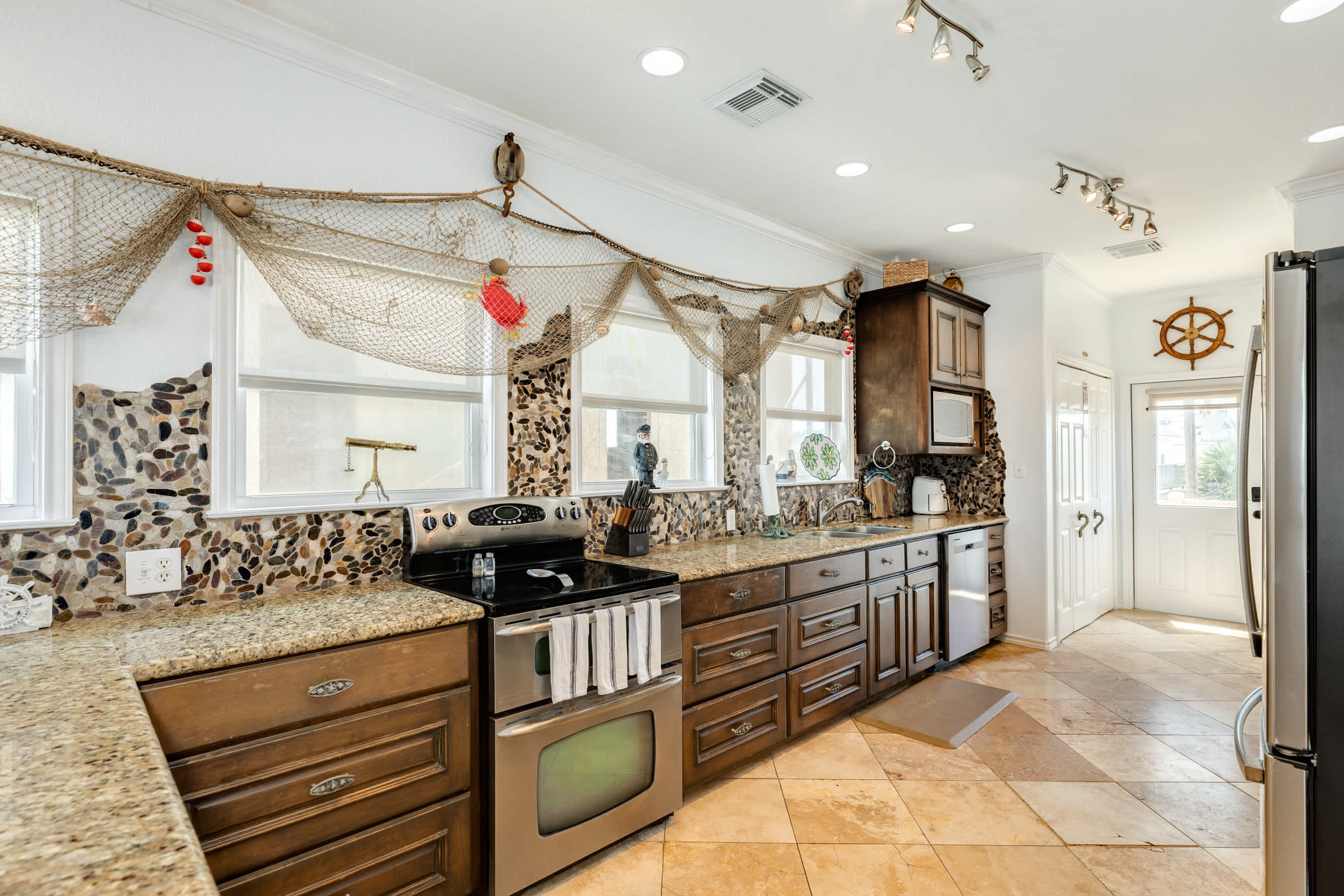 AMENITIES: outdoors - propane/gas grill, outdoor shower, outdoor furniture; indoors: AC, huge beautifully-appointed kitchen, all major appliances, coastal furnishings, WIFI, outdoor security cameras