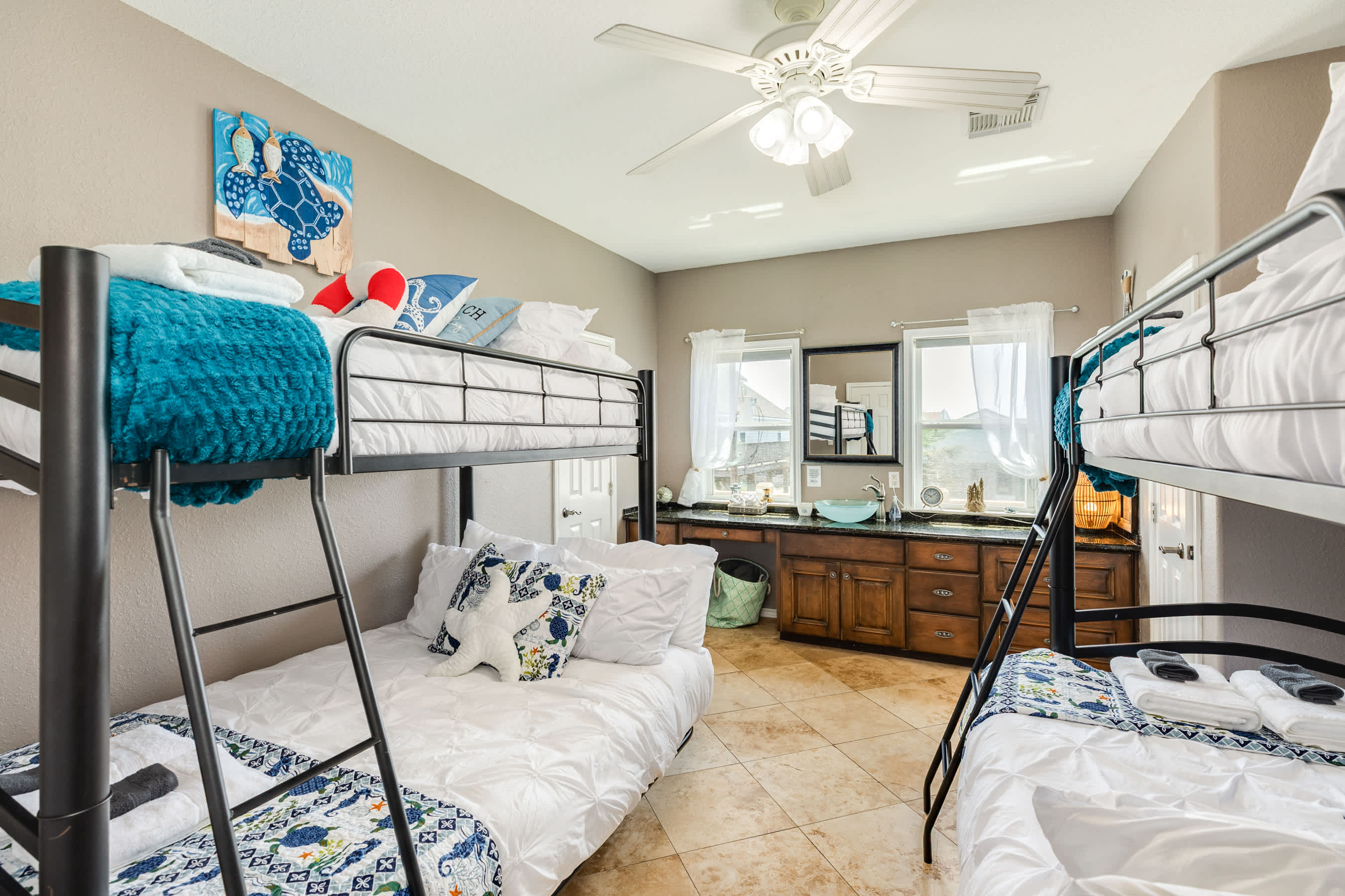 ~ 3rd bedroom with 2 x Twin over Full bunks with sink in bedroom and shared Jack n Jill bath with 2nd bedroom plus powder room bath as well (sleeps 6)