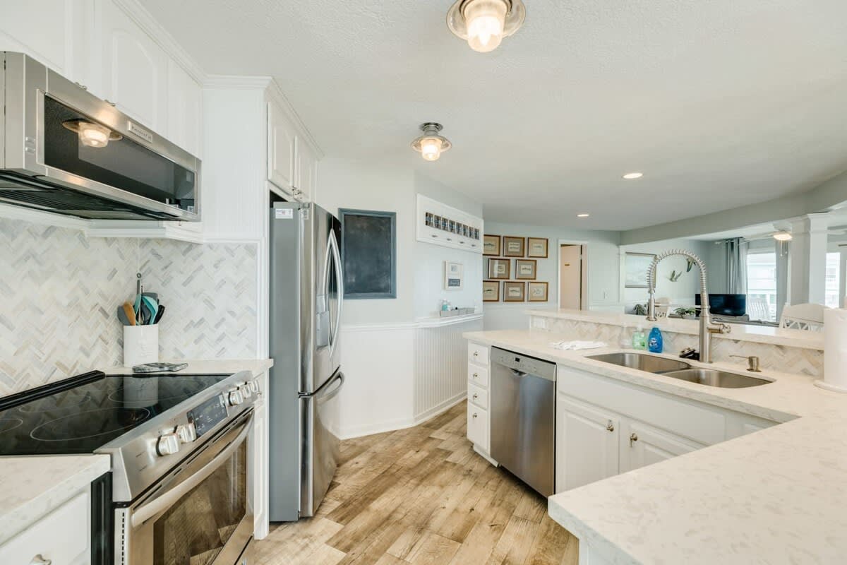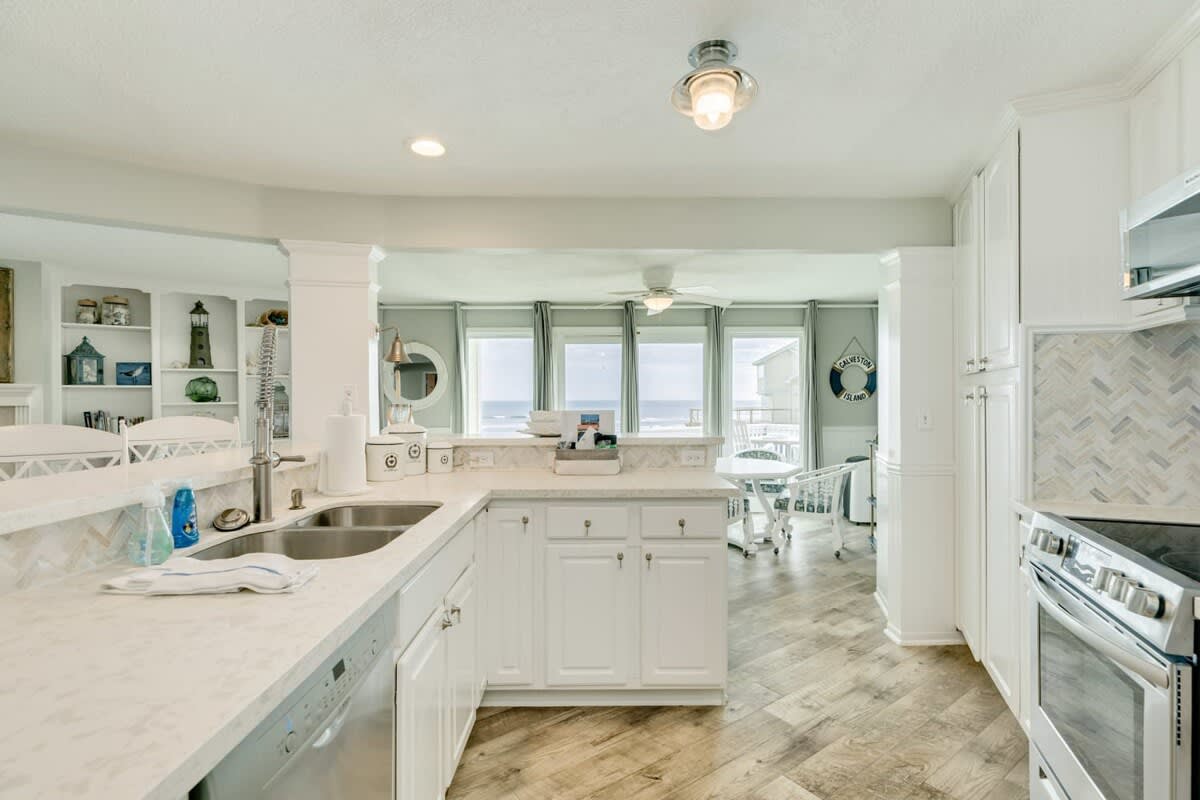 Offering 4 bedrooms, 3 1/2 baths, this stunning home sleeps up to 13 people in comfort and style (max 10 adults please). The recently remodeled kitchen features stainless-steel appliances and gorgeous granite countertops. The main living area is set for relaxation and nicely accommodates family and/or group time together at the coast.