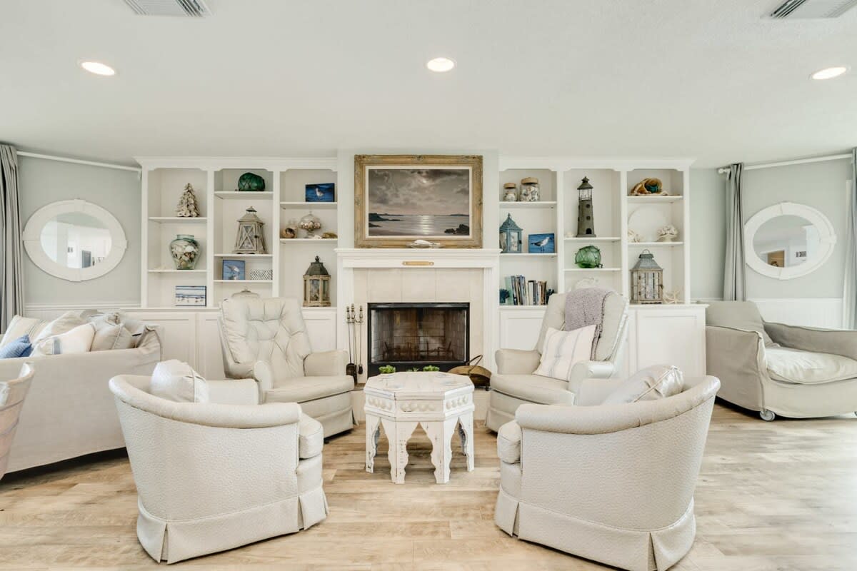 FUN FACT: This unique custom home was originally designed by a pair of oceanographers who wanted the house to reflect the shape of a mollusk. The mollusk shape can be seen throughout with the many spirals and clever layout of spaces.