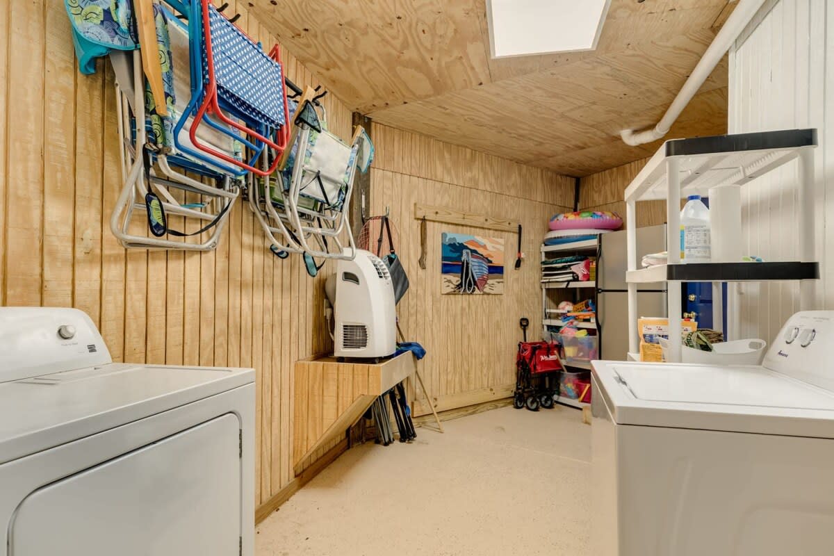 On the ground level, you will find a storage closet complete with beach chairs and sand toys for a day at the beach, outdoor shower, plus a washer and dryer. Life is good!
