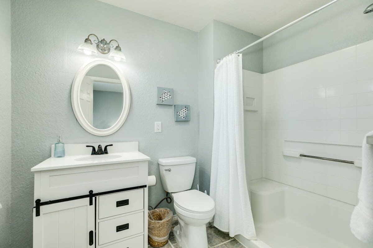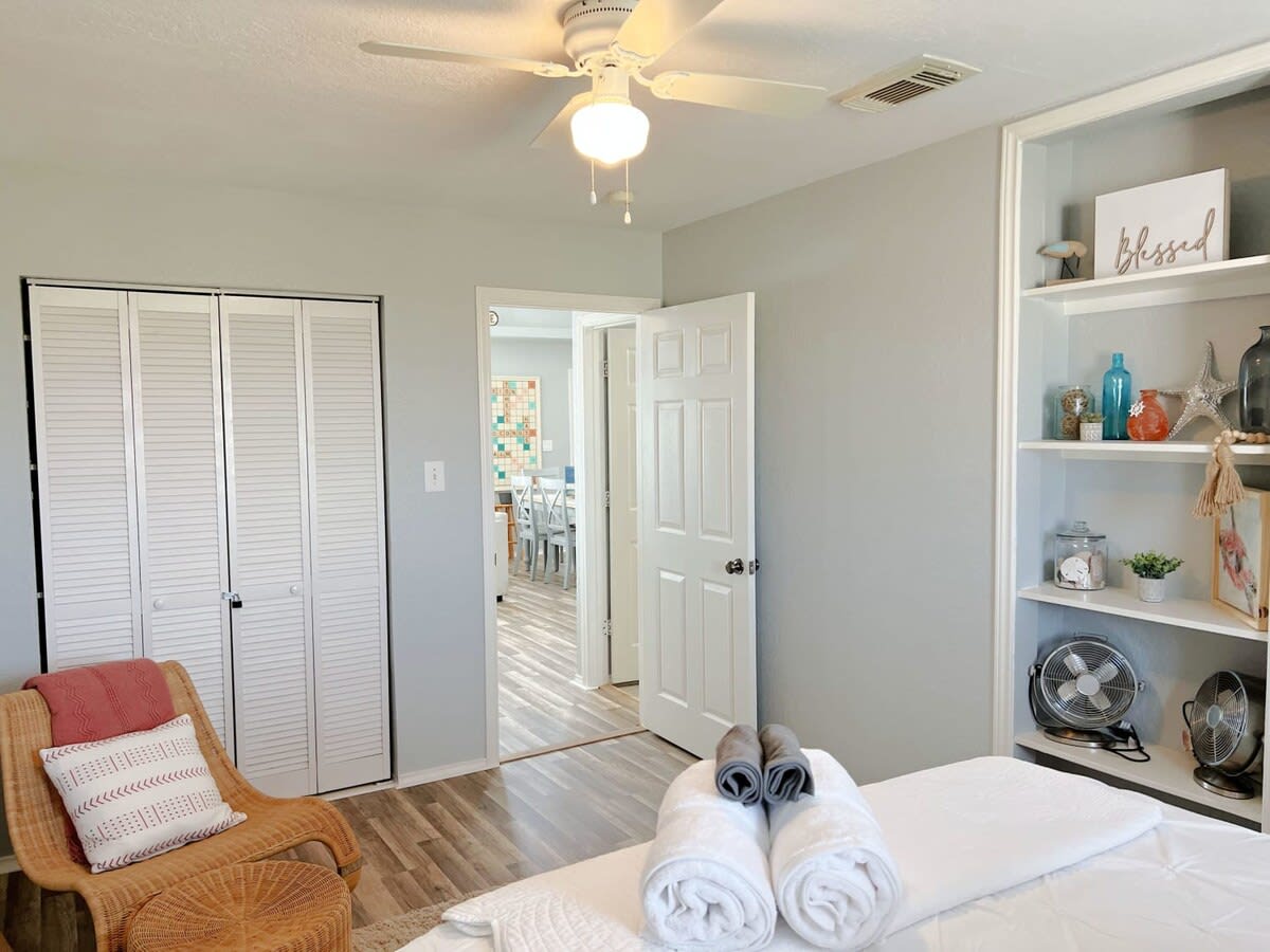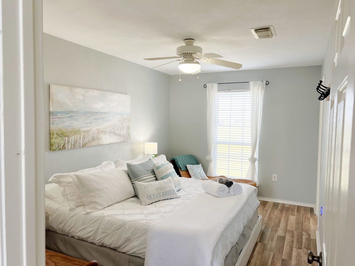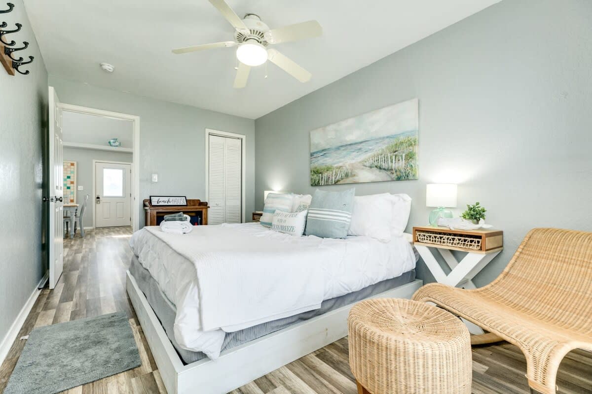 This classy and charming coastal farmhouse style home cottage has an unobstructed view of the Gulf in which you can enjoy the pelicans diving for breakfast and periodically dolphins at play. It's a great spot to spend your vacation time!