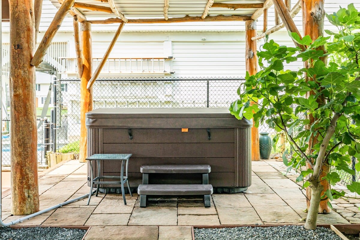 Outdoor: hot tub, fenced area, fire pit, plenty of seating, outdoor security/safety cameras on property, 240v plug is available for charging electric cars