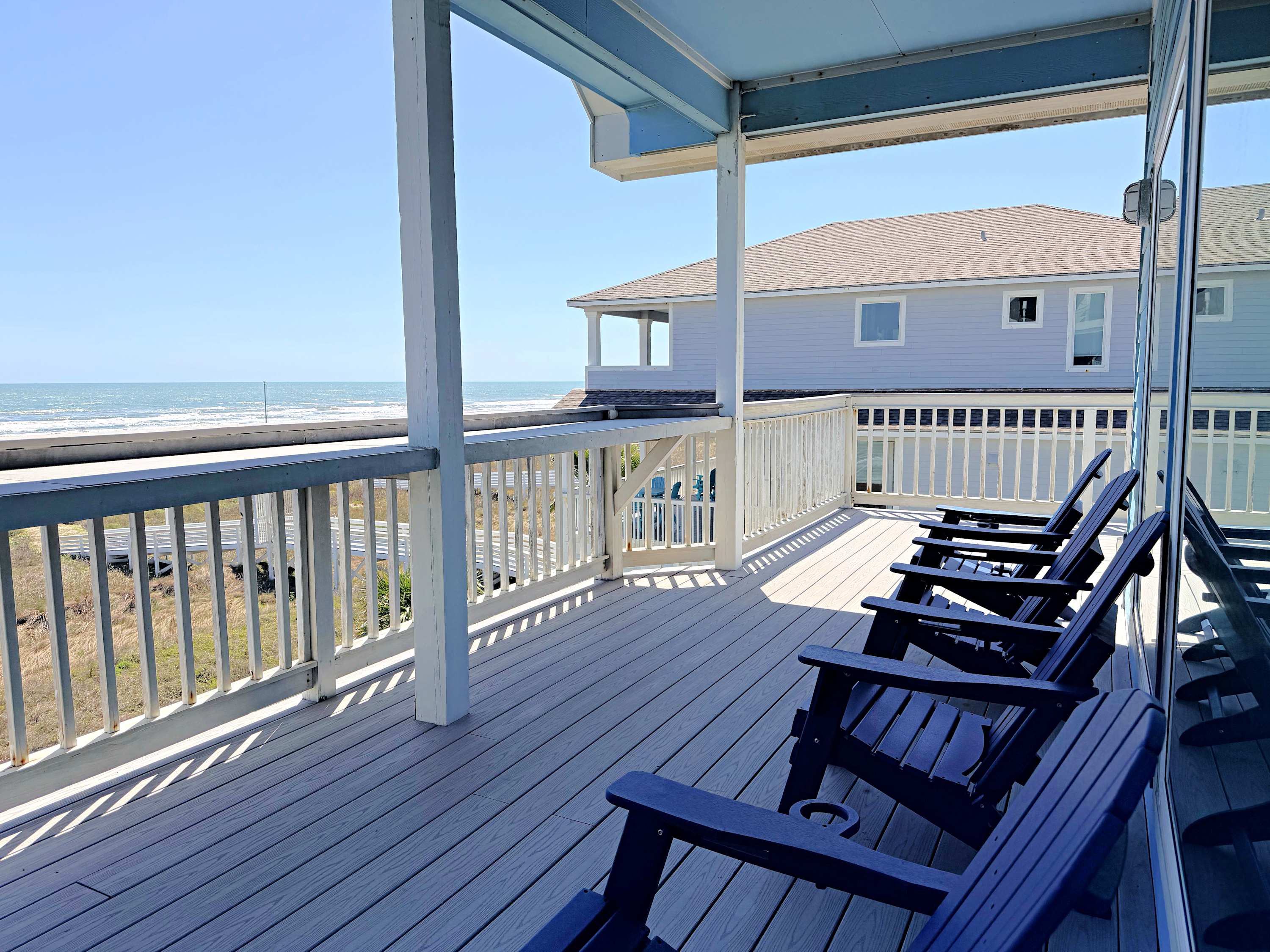 Step outside, and the real magic unfolds. The expansive decks are your perches above it all—perfect for morning coffee, sunset cocktails, or simply watching the tide do its thing. And then there’s the boardwalk: your private runway to the beach, stretching out like a promise and delivering you directly into the sand.