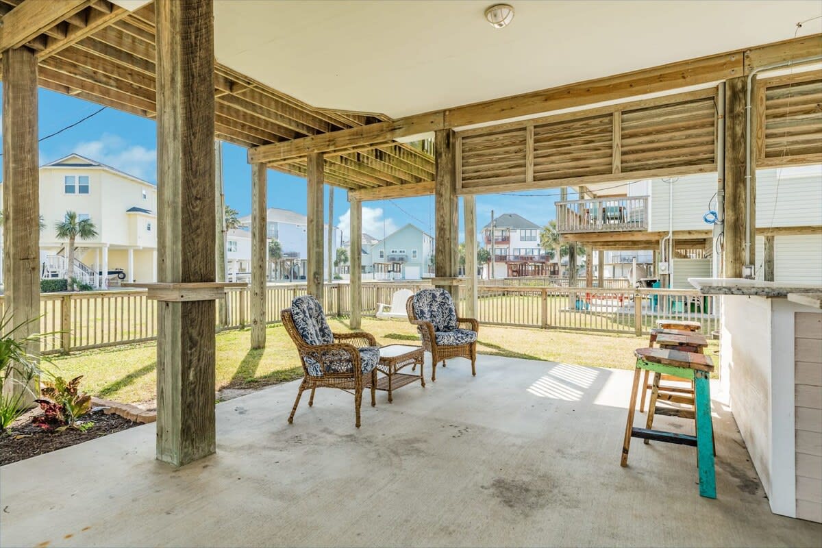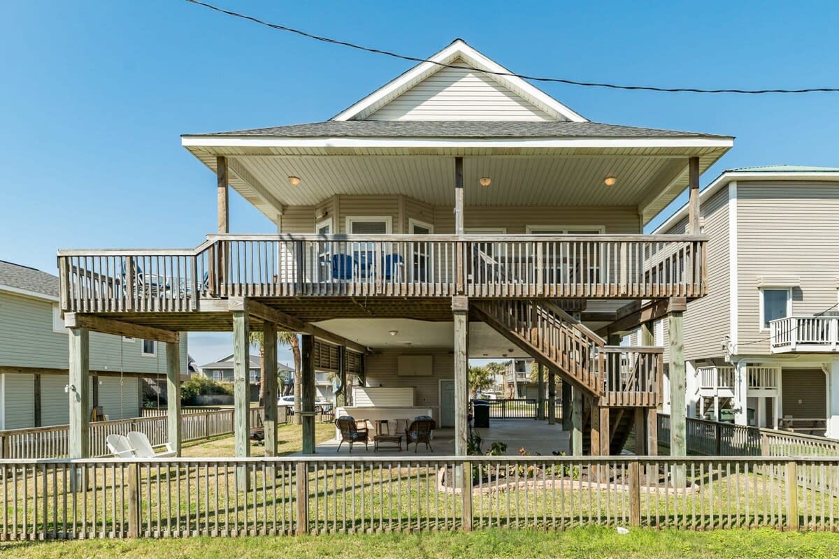 High-end neighborhood, Pirates' Beach is located about 10 minutes south of the heart Galveston offering a plethora of restaurants, grocery, and activities. Public beach access is right in the neighborhood and Mario's Pizza is right across the street. Waterman's Restaurant & Marina is just 1.7 miles from home.