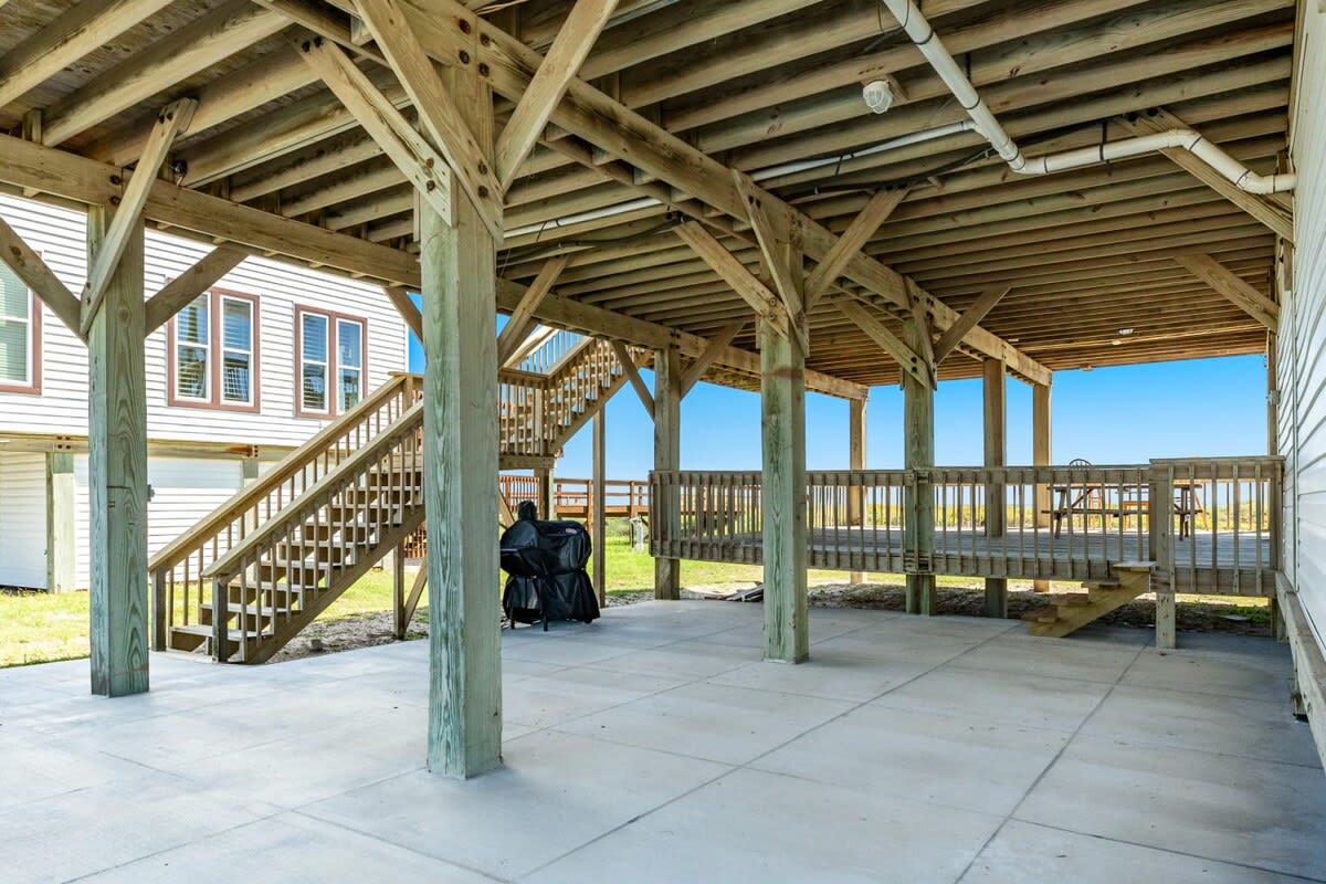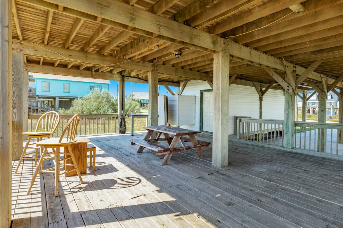 Large dining table, Smart TV, ceiling fans, central A/C, washer & dryer, charcoal grill, private walkover pier, outdoor shower/rinse off, double decks overlooking ocean water and beach galore, outdoor safety/security cameras