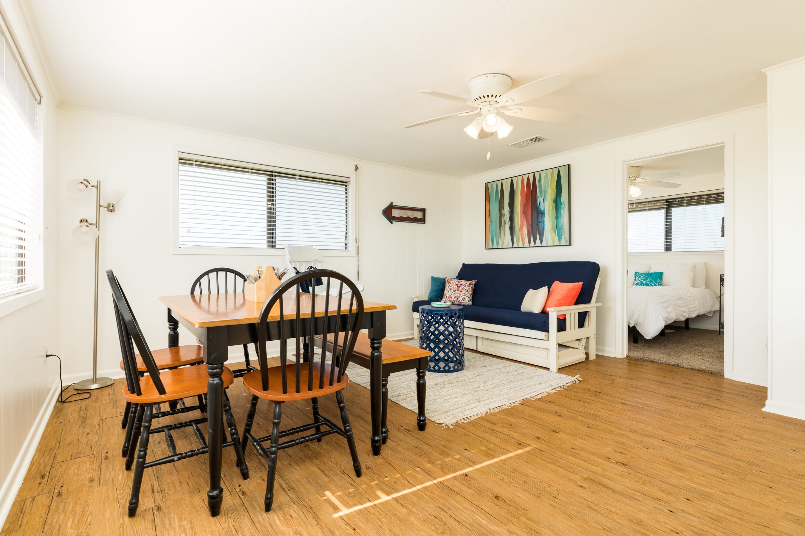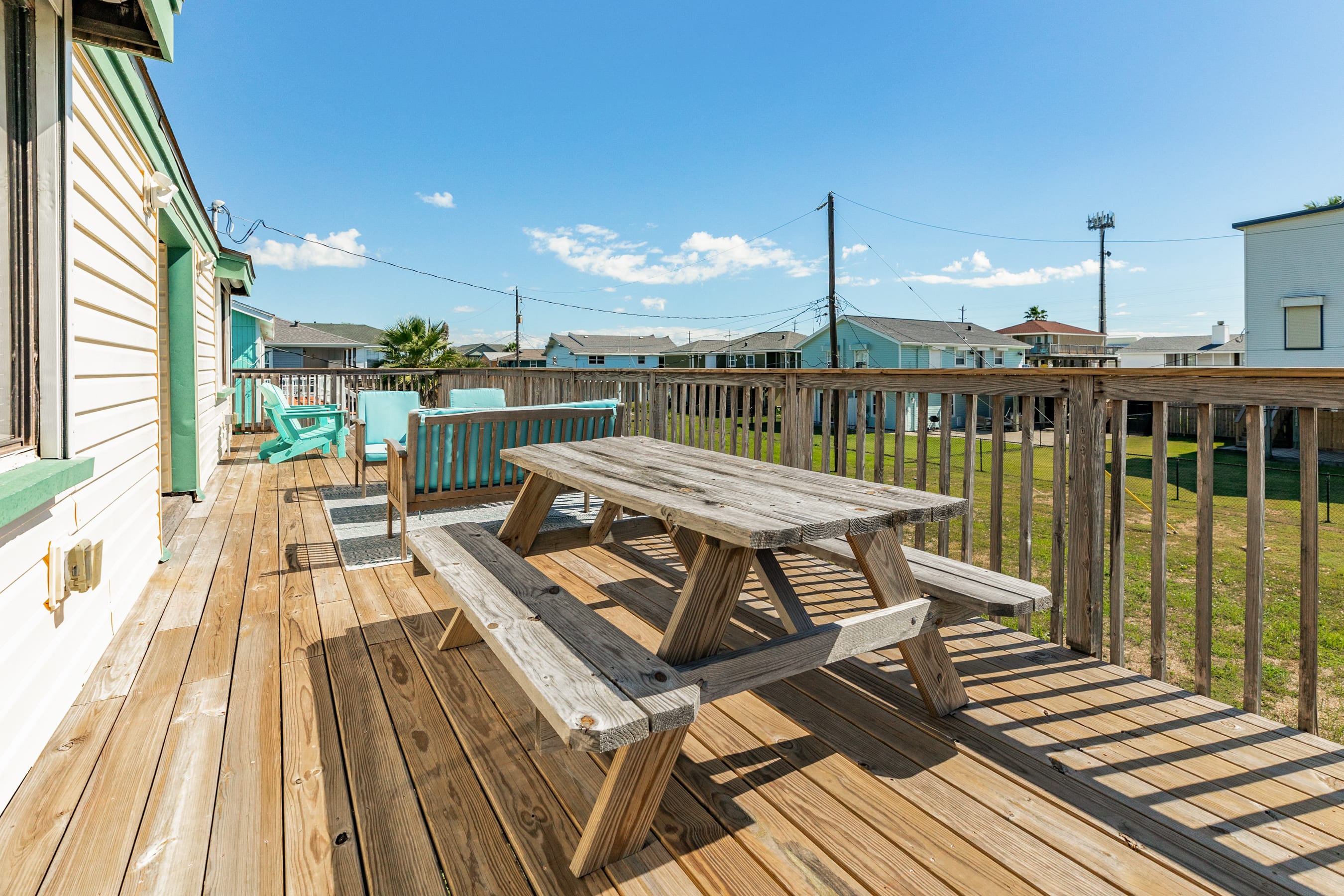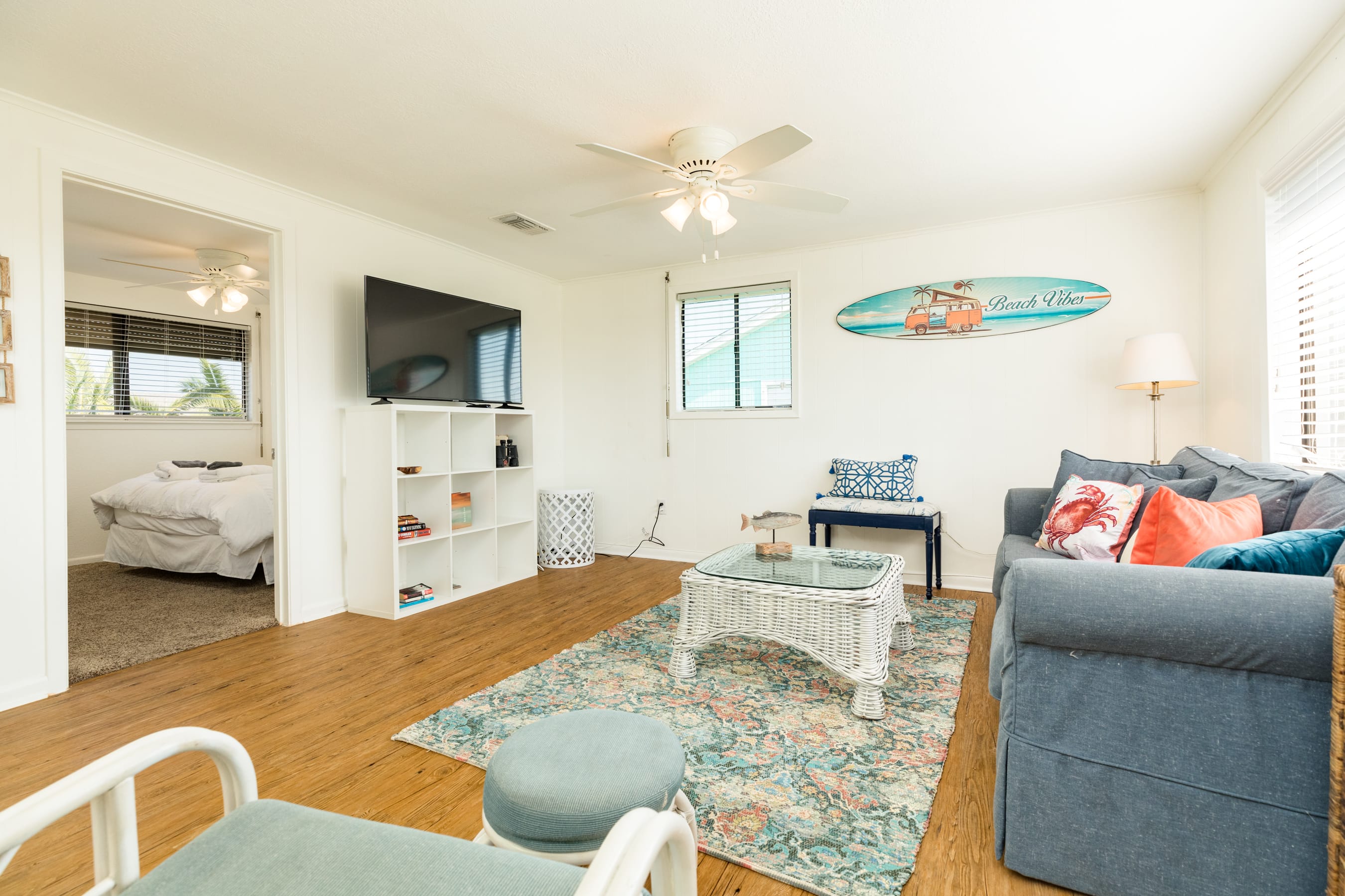 This bright and light beach pad is located just a couple of blocks from the Gulfside and a bit longer walk or quick car ride to Jamaica Beach City Park with pool. There is also a West Way Grill & Pizzeria, Jamaica Beach Food Store, and Shrimp N Stuff Food Truck within walking distance (or very very quick drive).