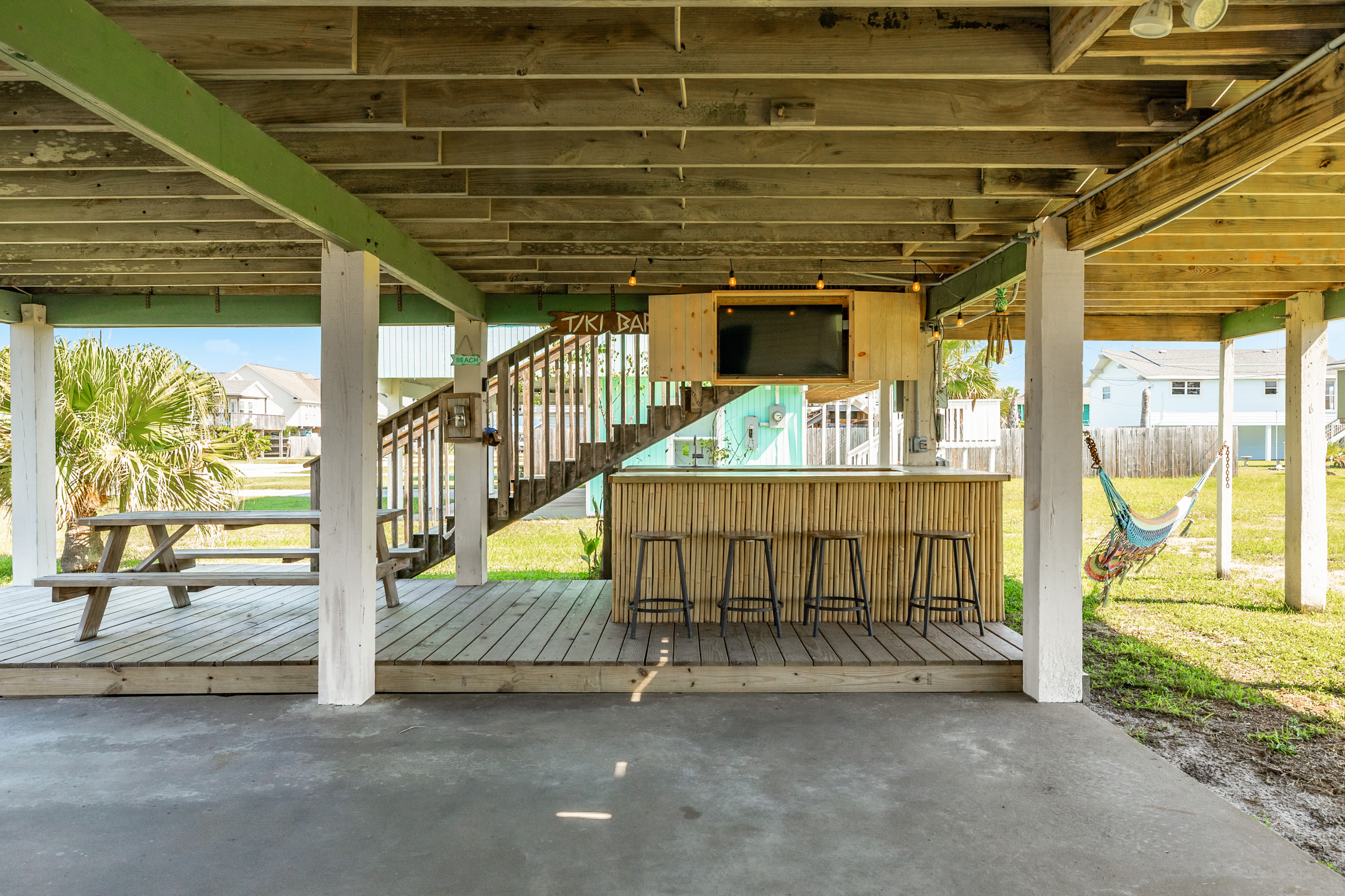 outdoors - outdoor beach bar with TV, charcoal grill, lots of deck space with plenty of outdoor seating, picnic table, hammock, outdoor shower