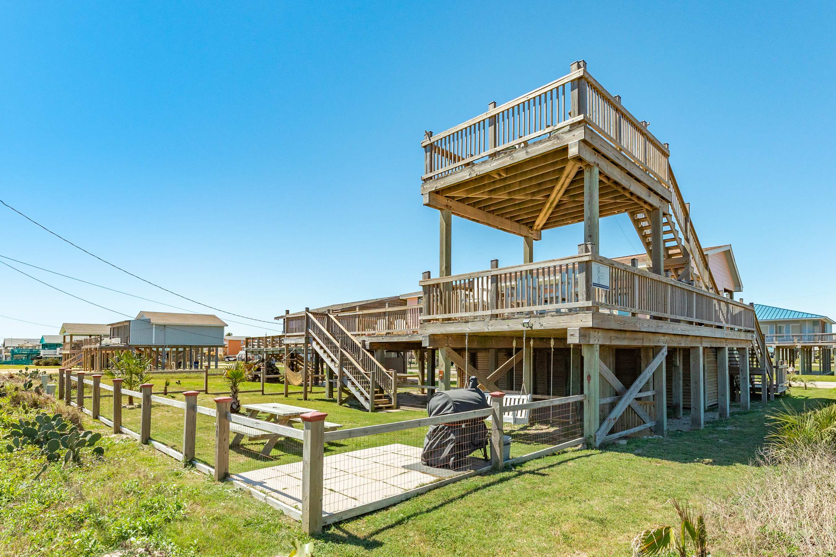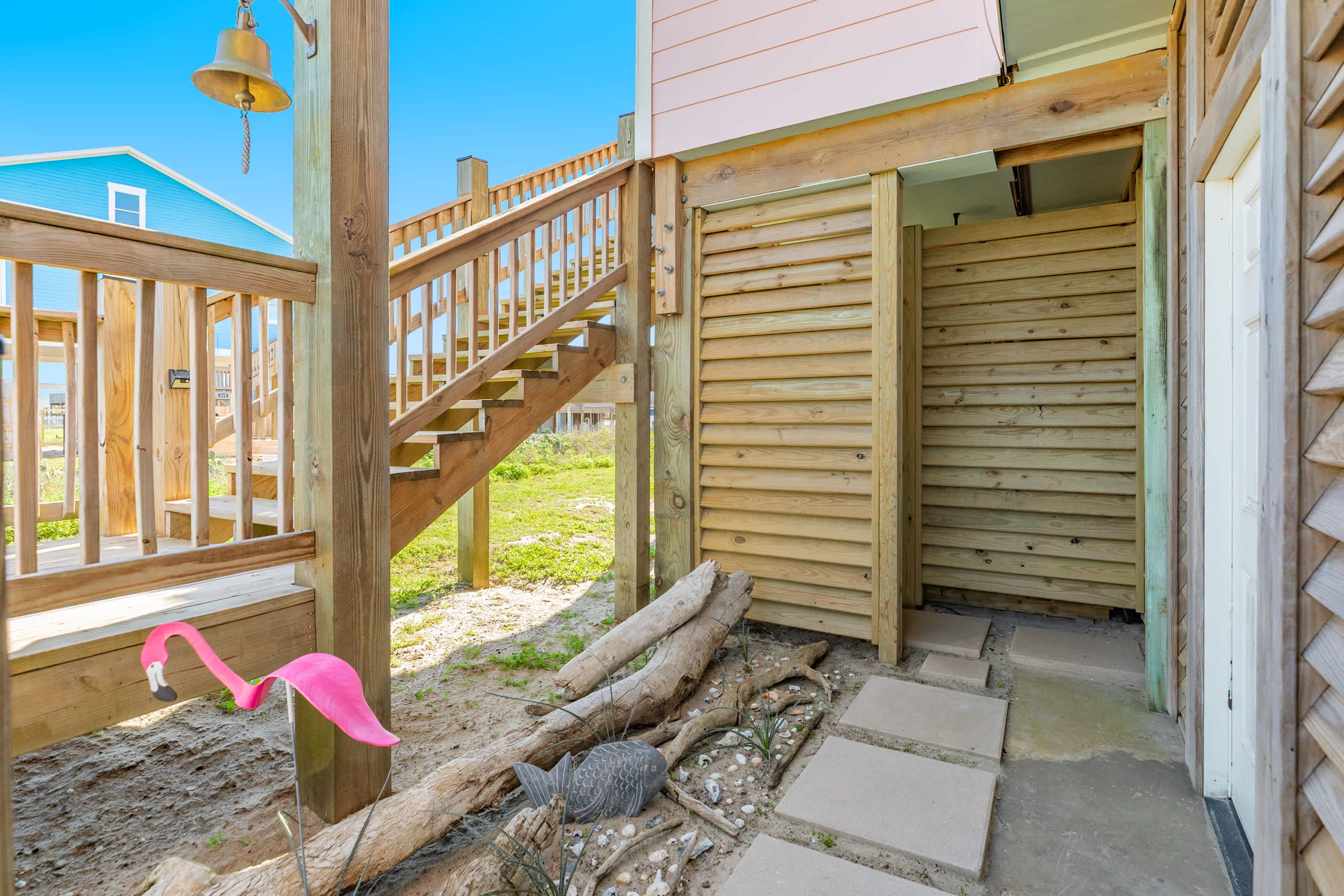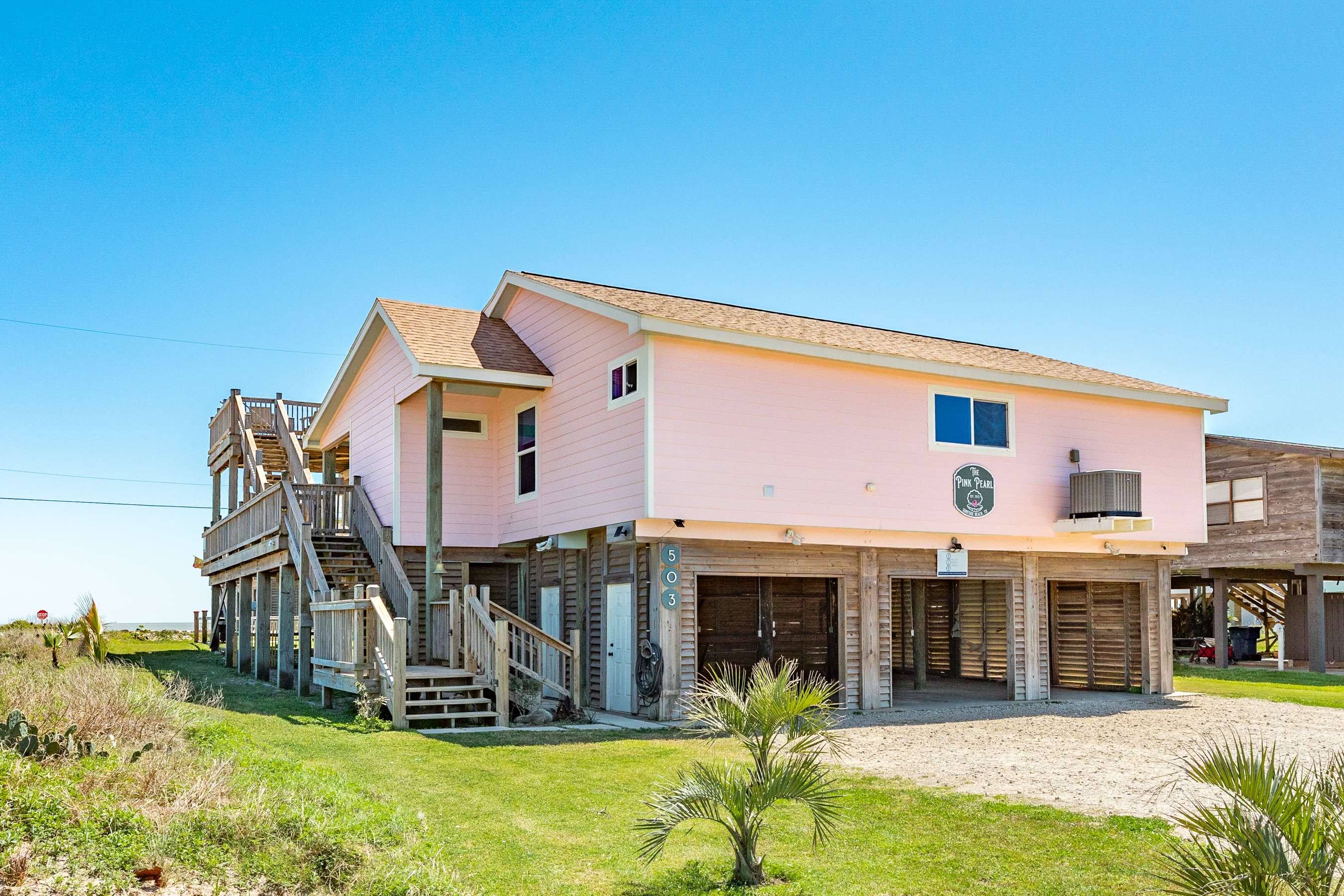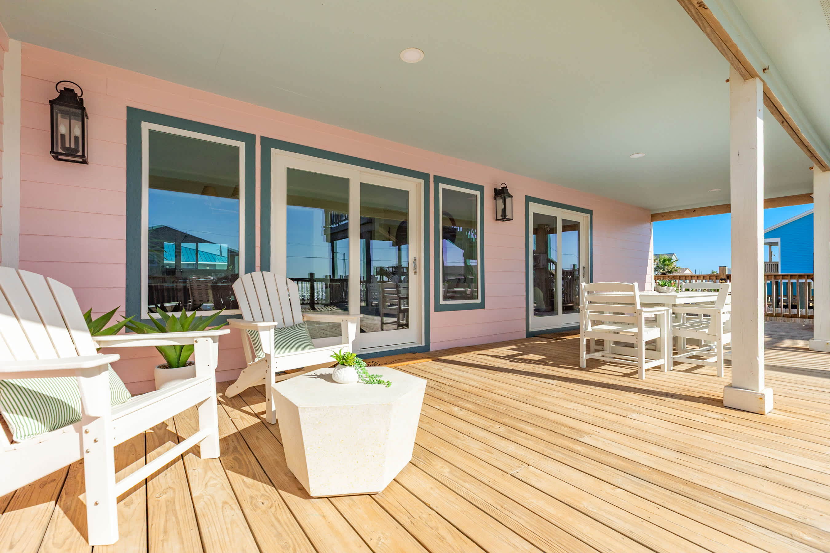 After a day at the beach, rinse off in the huge outdoor shower and fire up the grill for a delightful barbecue experience. Hang out on the main deck and play some games or simply relax with your favorite island beverage in hand. The Pink Pearl Oasis is designed to maximize your enjoyment of the coastal lifestyle.