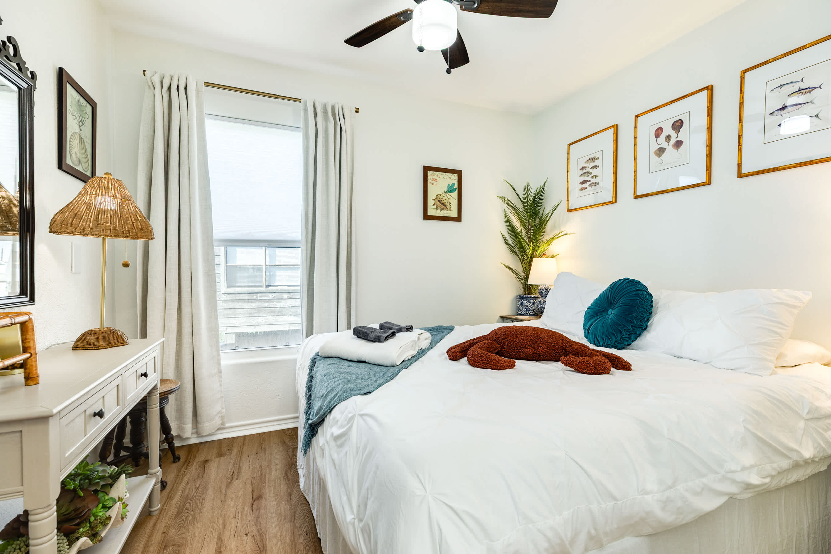Each bedroom is a haven of comfort, offering a restful retreat after a day of beachside adventures.
