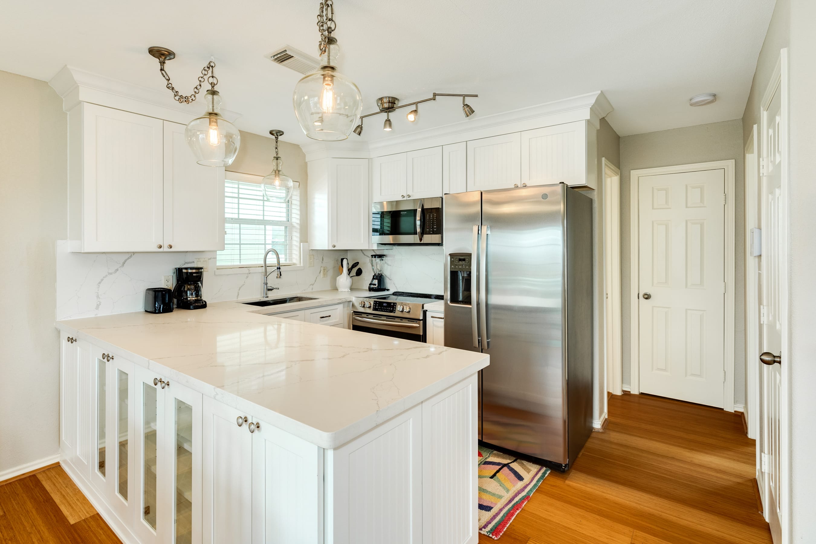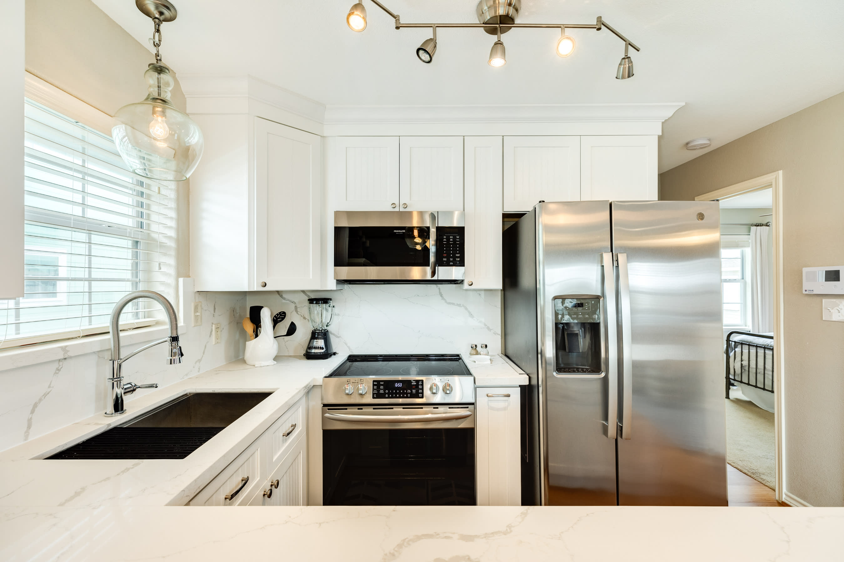 Gourmet Kitchen: The well-appointed kitchen is a chef's dream, featuring elegant quartz countertops and top-of-the-line stainless steel appliances. Fully equipped with all the essentials, it’s perfect for preparing delicious meals for family and friends.