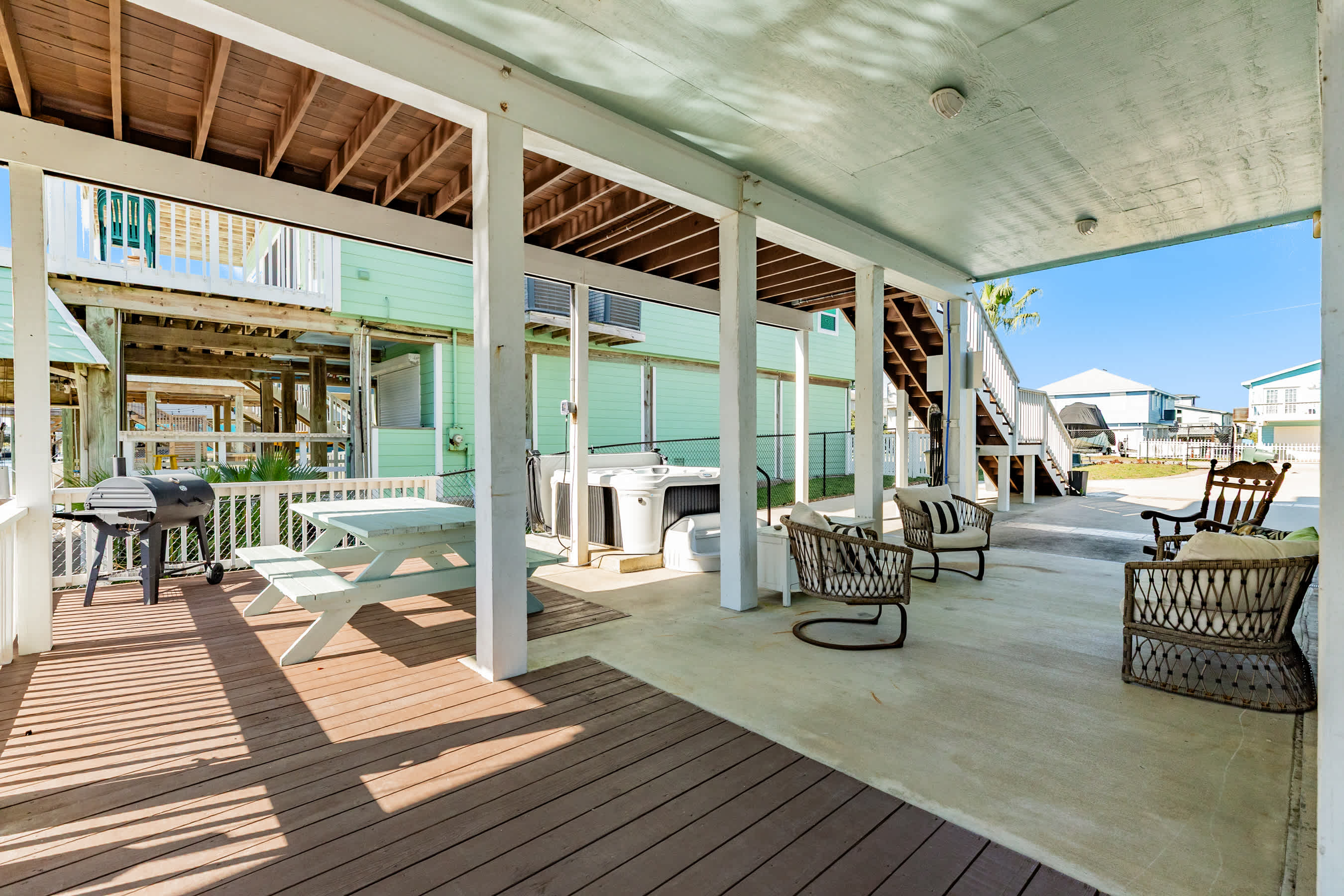 Sea Isle is a beautiful community, located about 12 miles from Galveston's seawall, often referenced as the West End. It has that laid back beach flavor perfect for your getaway. One of the popular neighborhood hot spots is the West End Restaurant & Marina which frequently offers live music, plenty of tvs airing different sporting events/games, good food, and tasty cold beverages. There is also access to the public beaches (3), boat ramp, marina, park, basketball courts, seasonal swimming pool (Sea Isle POA charges $100/week for amenity pass, available from the office during normal business hours, with advanced notice by 979's staff, Memorial Day through Labor Day, subject to change) and tennis courts, so guests get an opportunity to experience the benefits of both the Gulf and Bay sides of the island.