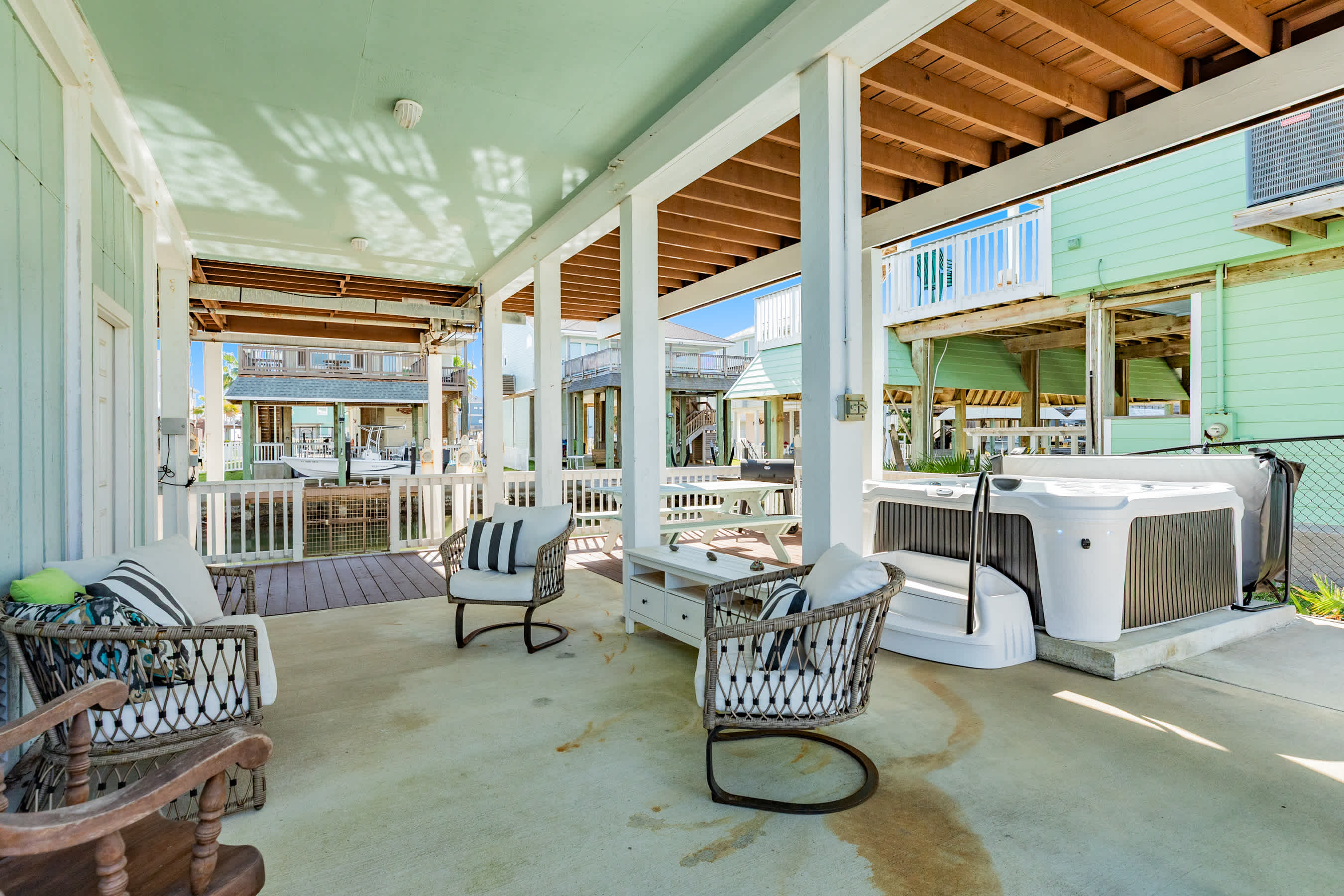 OTHER FEATURES/AMENITIES: hot tub, charcoal grill, boat slip, central A/C, ceiling fans, Internet/WIFI, SmartTVS, all kitchen appliances including dishwasher, stackable washer and dryer, guest 'comforts of home' welcome kit