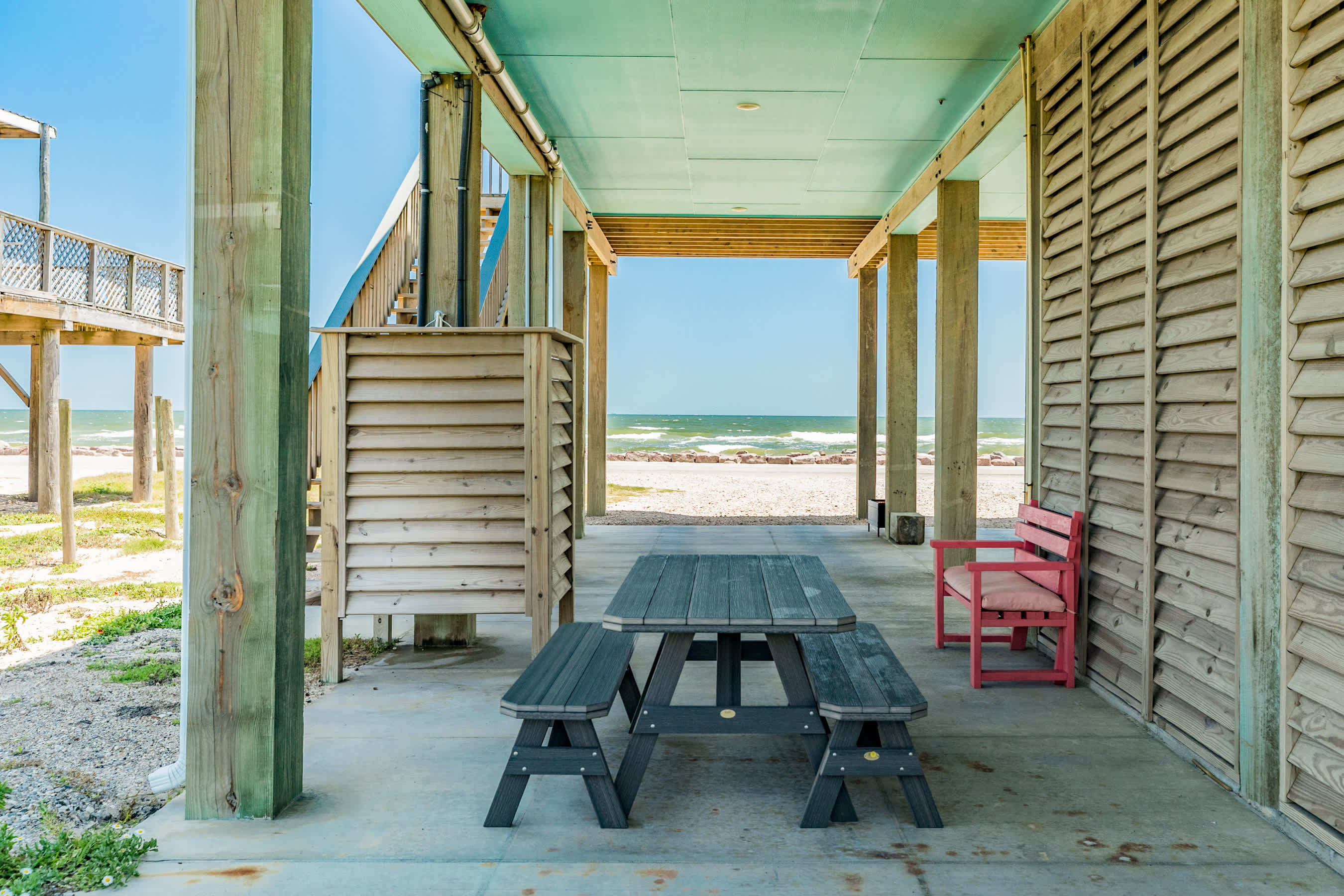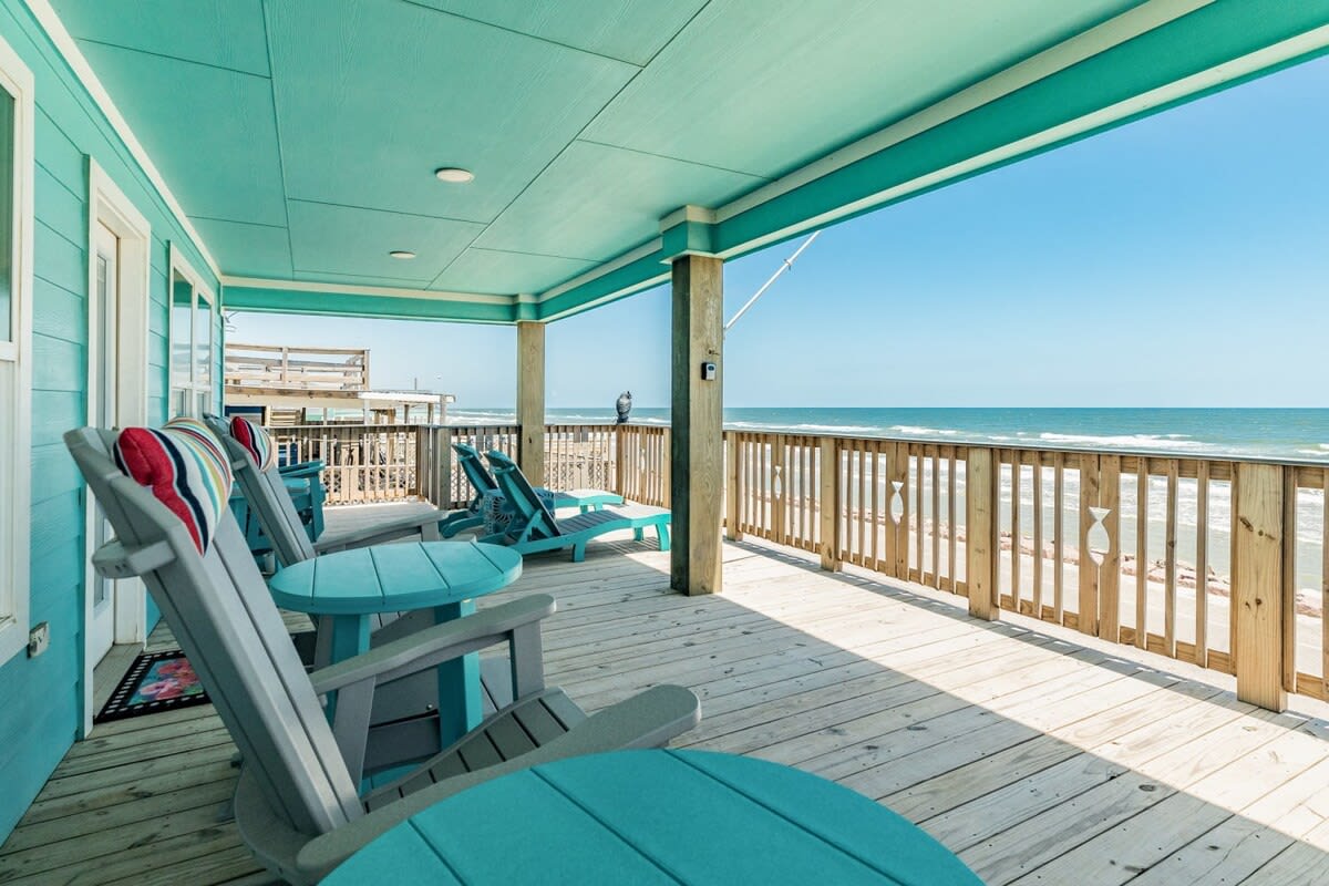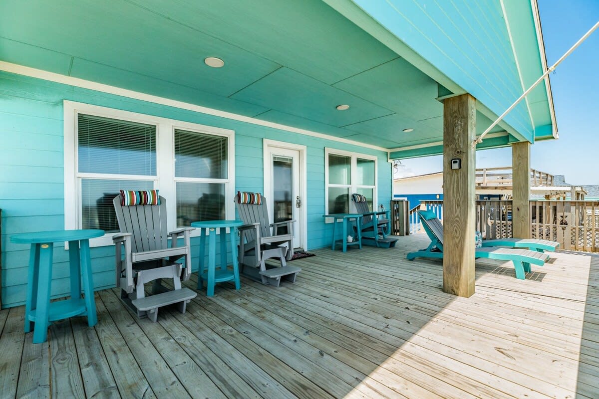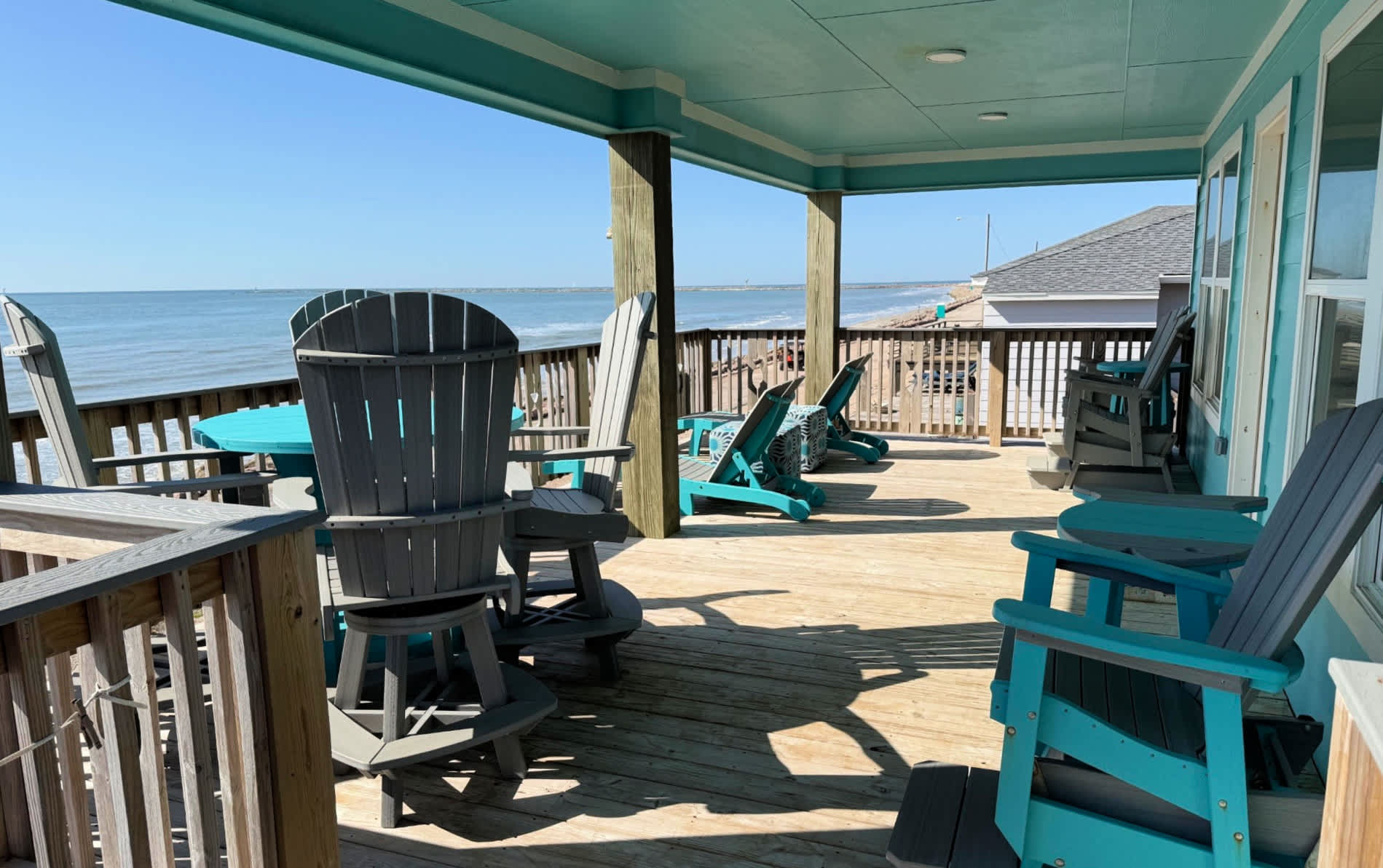 Fantastic location facing the beautiful beach and water - perfect spot for your group to bask in the sun, build sandcastles and check out the surfers (or be one)! You'll be sure to enjoy the large deck with plenty of comfortable and sturdy seating designed for sea breezes, sunrises and surf sounds whether sipping that cup of joe in the am or cool cocktail in the evening - cheers!