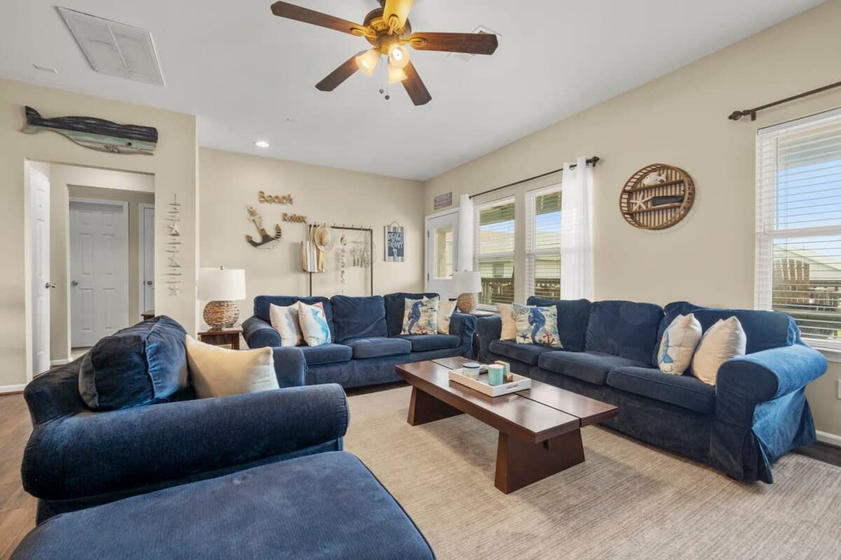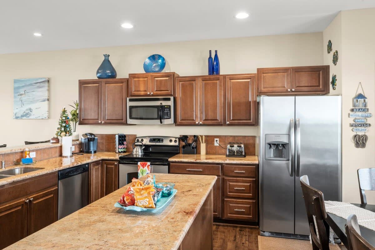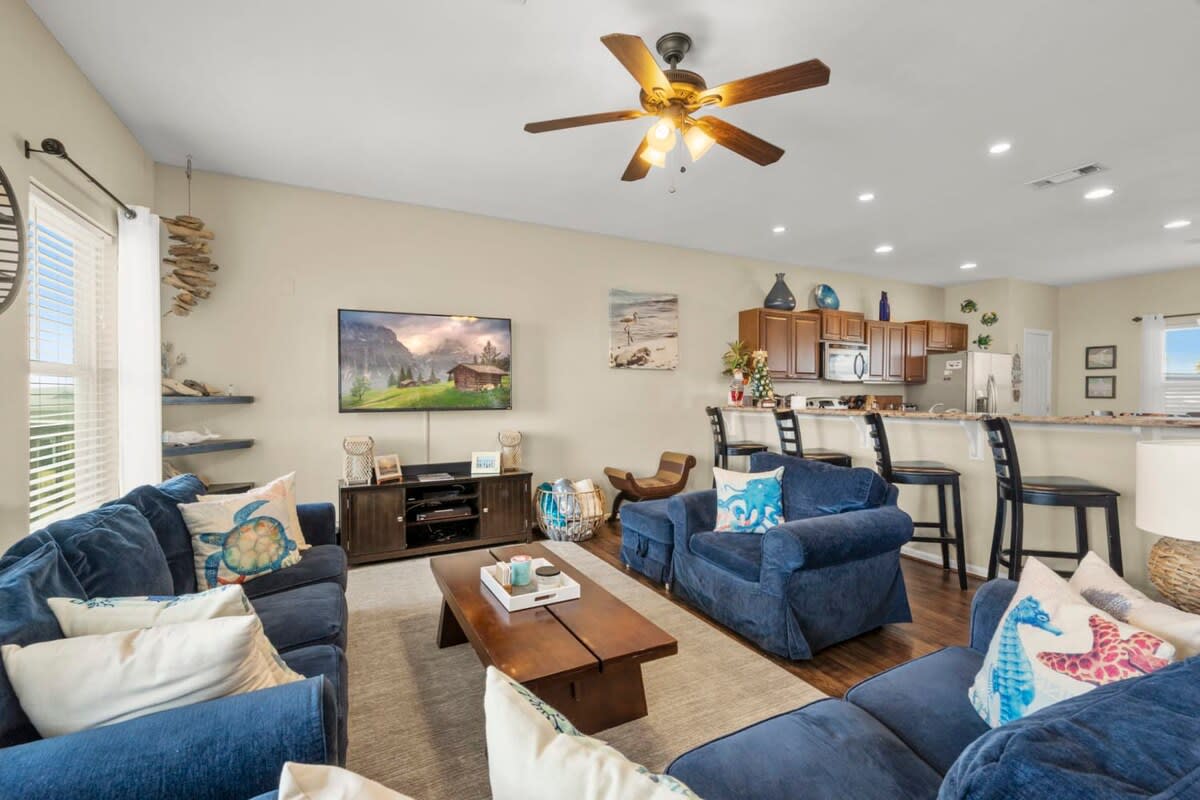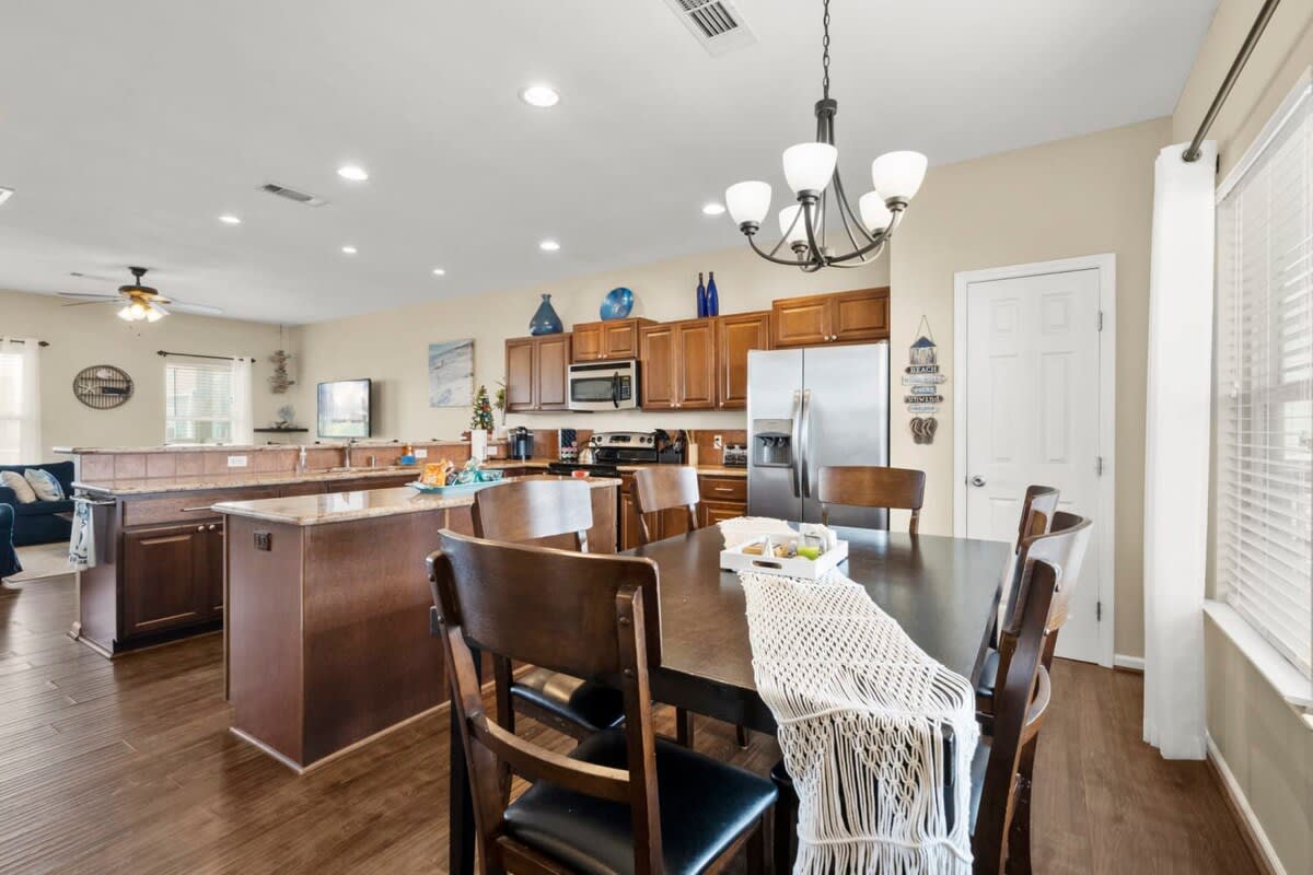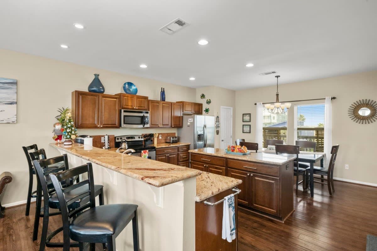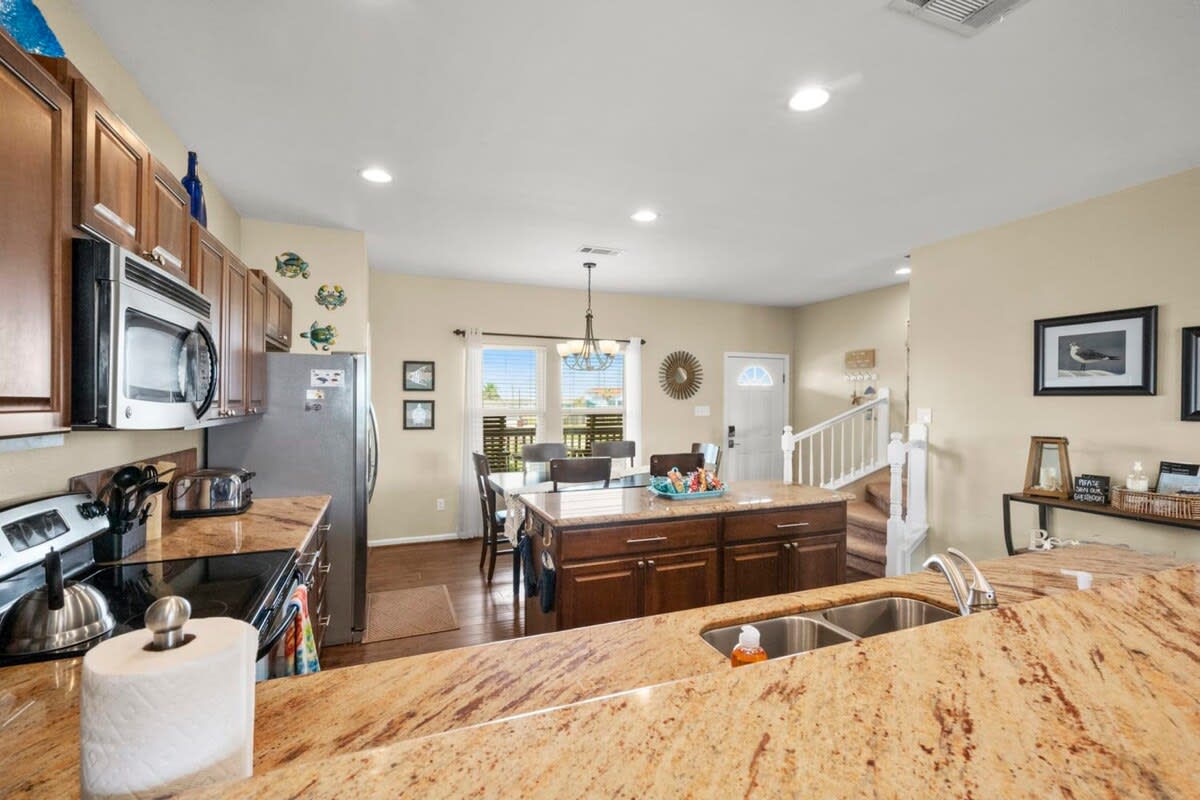 Relax in this beautifully outfitted beach home that more than comfortably sleeps your group of up to 10. Kitchen is larger than most vacation rentals in this area and is complete with everything you would need for an awesome weekend trip or even a longer weeklong stay. The family room is open and is adjacent to the kitchen allowing the chef(s) and guests to enjoy each others company while preparing your favorite meal. Home also has complimentary WIFI, so you won't feel disconnected during your stay.
