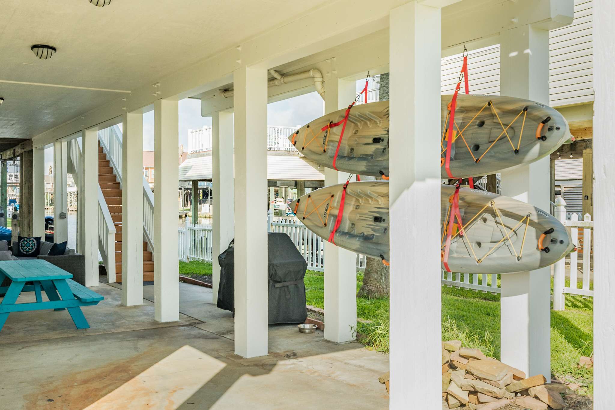 Bringing your boat? Tie up right out front and hit the water whenever the mood strikes! Prefer paddling? We’ve got you covered with kayaks provided—explore the bay, cruise the canals, or chase the fish. Whether you're here to boat, beach, or just bask in the views, Seas the Day is your ultimate bayside escape.