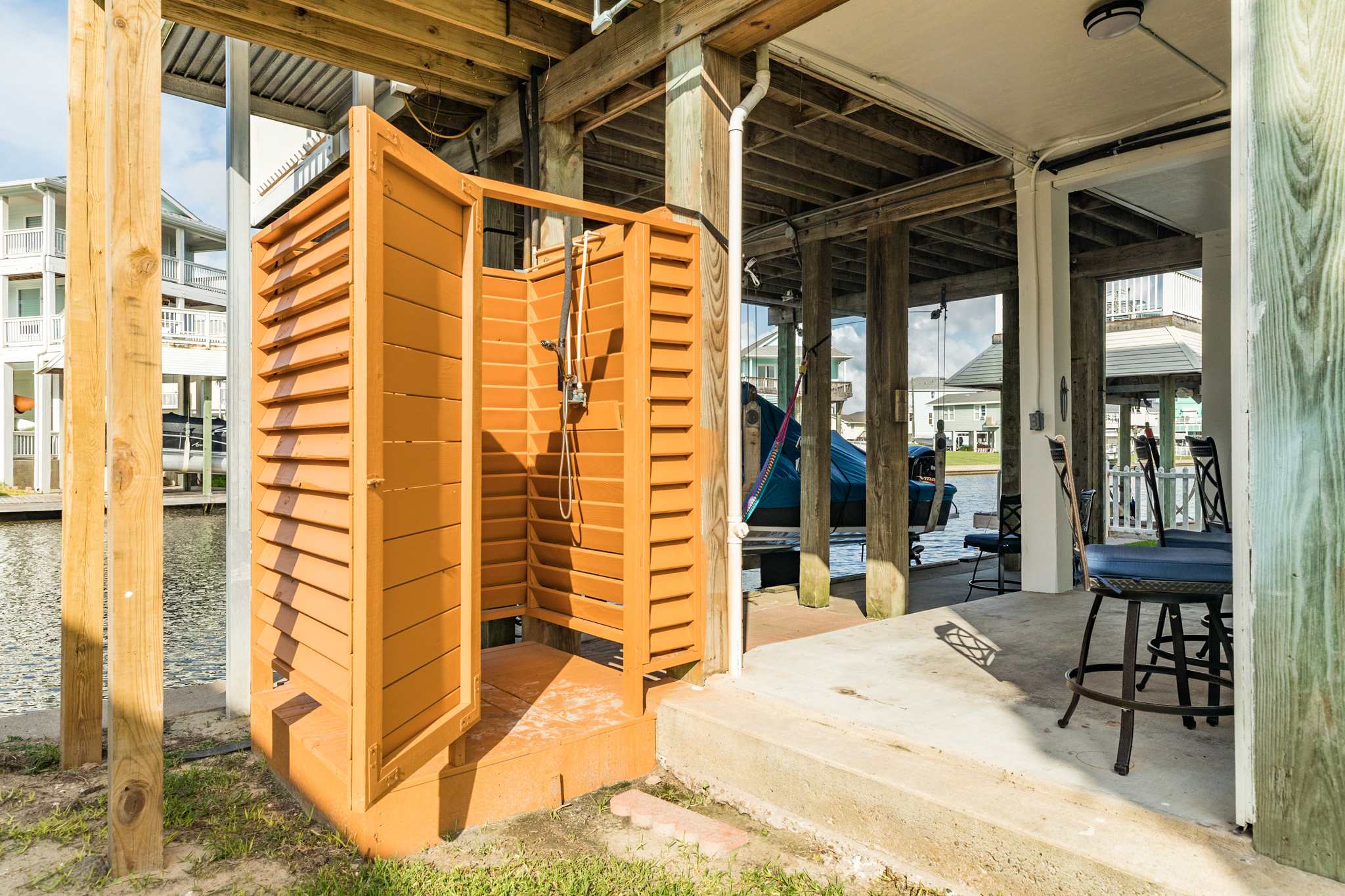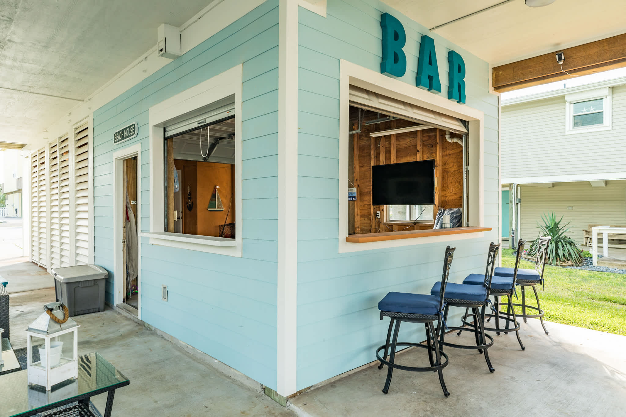 Down below, the ground-level outdoor bar is where the good times roll. Kick back with a cold one, catch the game on the TV, and keep your drinks chilled in the mini fridge—all while soaking in the salty breeze. Need a quick refresh? A convenient half bath means you won’t have to miss a moment of the action.