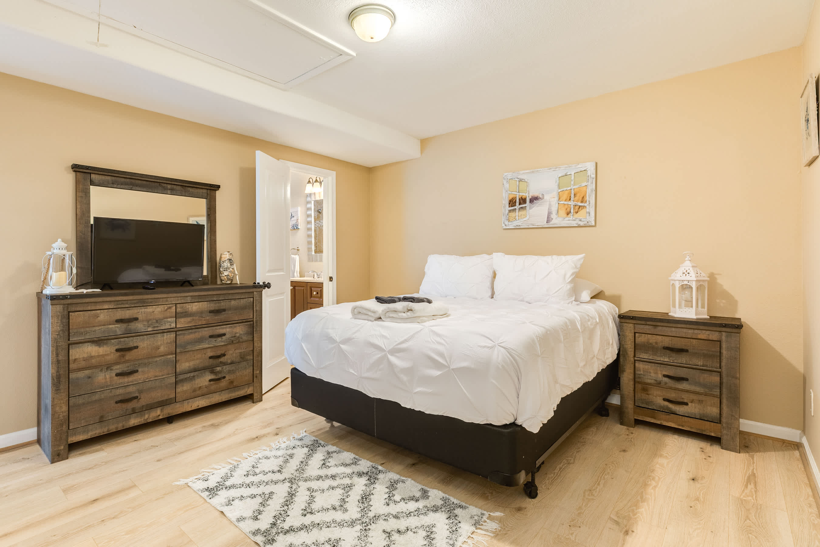 All beds are outfitted with luxurious bedding, as well as, bathrooms with luxury hotel grade towels and toiletries.