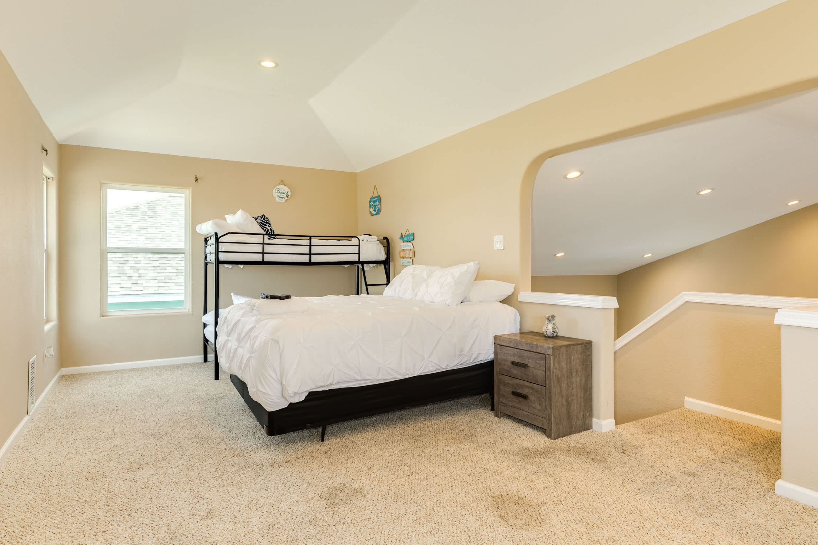 * Bedroom 4/Loft Area with 2 x Queen beds and Twin over Twin bunk bed, shared full bath (Sleeps up to 6, upper level)
