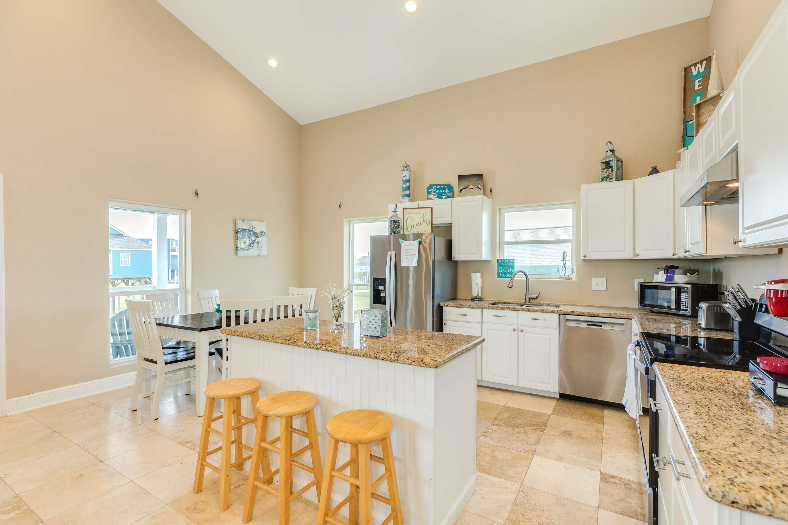 Kick back and relax at Shorely Blessed—a comfy, coastal hangout with room for the whole crew. With 4 bedrooms, a kid-friendly loft, and a wide-open floor plan, there's space to spread out and just be. Vaulted ceilings and lots of natural light keep the vibe easy and breezy, while the multiple decks, grill, and chill zones make it perfect for lazy afternoons and sunset hangs. It’s the kind of spot that feels like a deep breath of salty air.