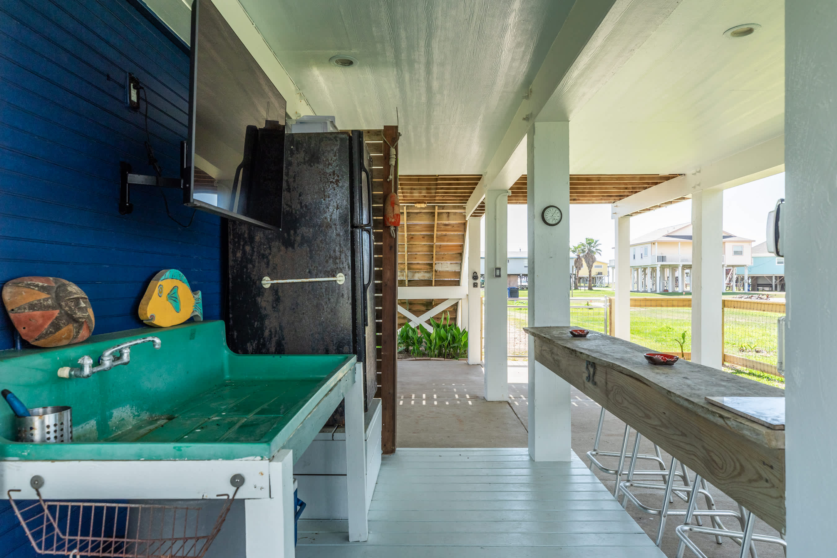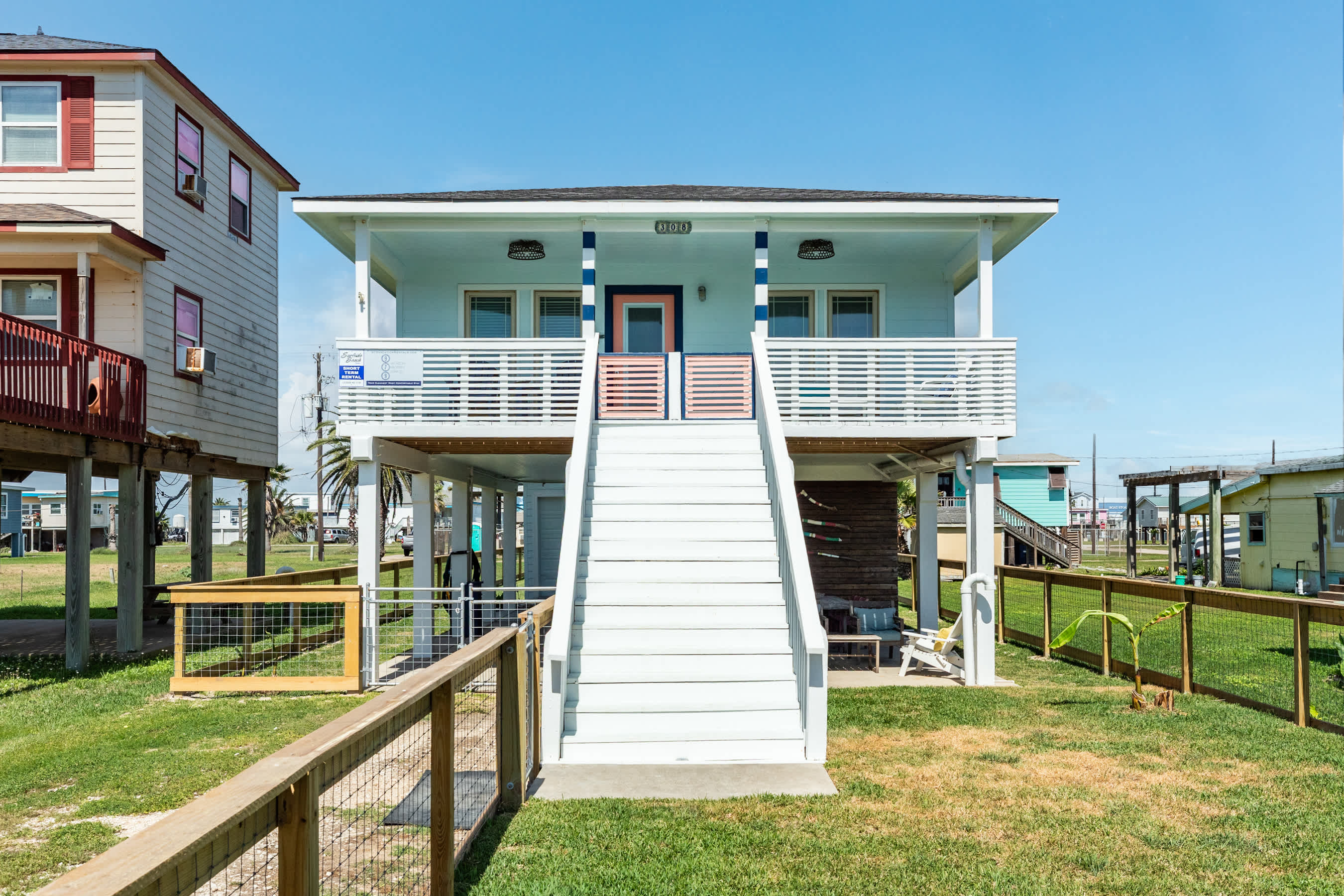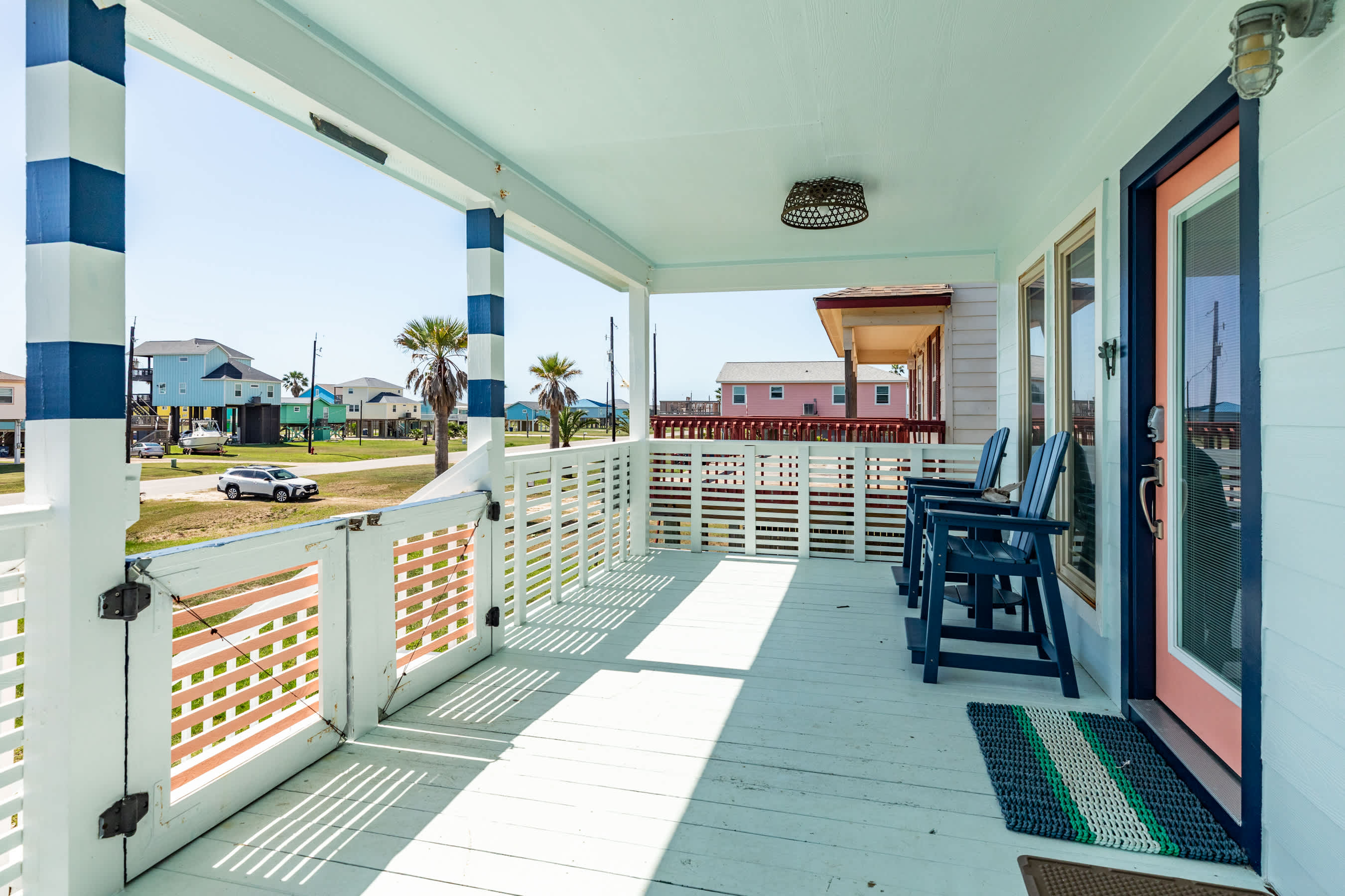 Welcome to Surf & Turf – where flip-flops are the dress code and every hour feels like happy hour! Sip something fruity at your own beach bar, feast under the stars with outdoor dining options galore, and take in those glorious seaside breezes from the covered front porch.