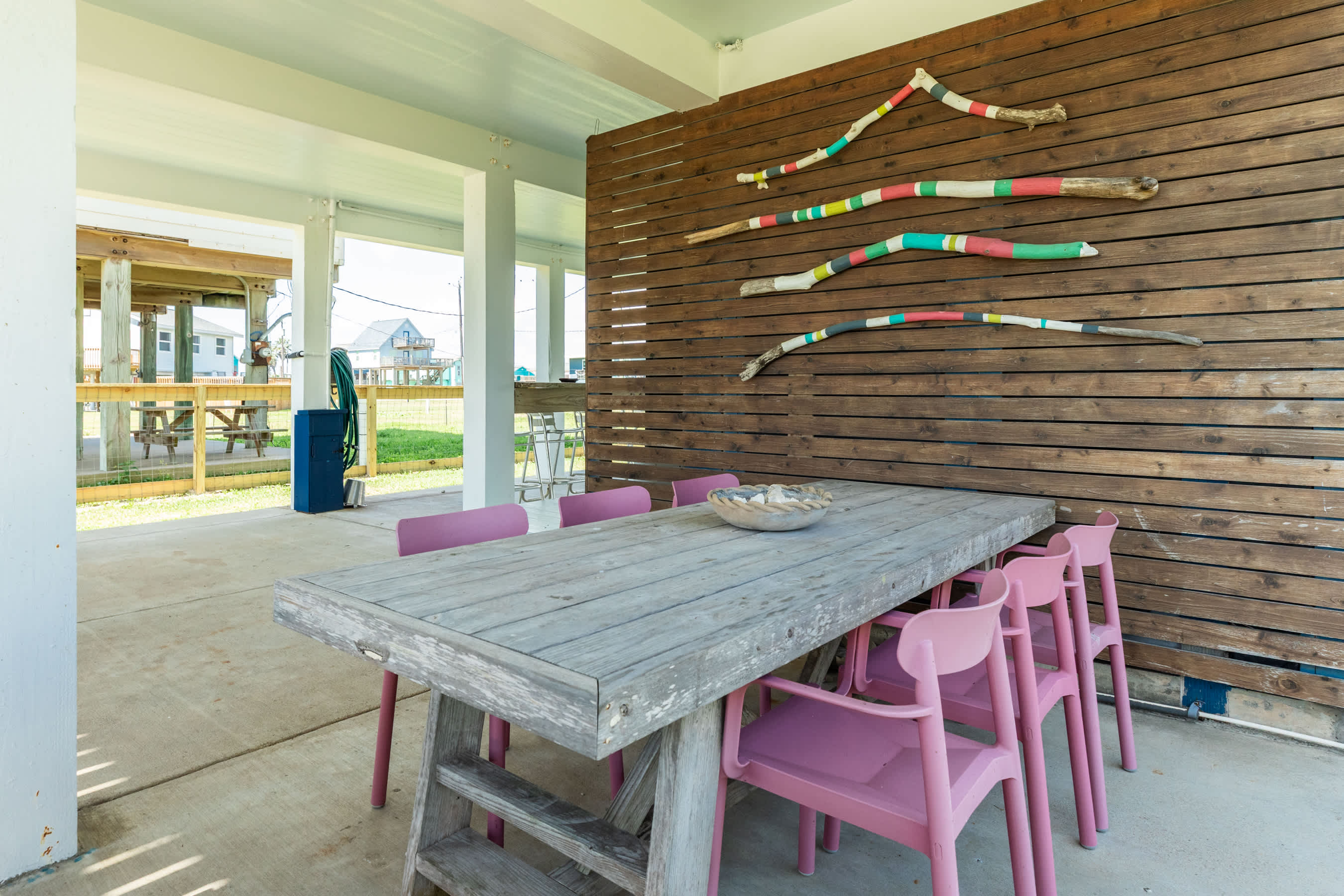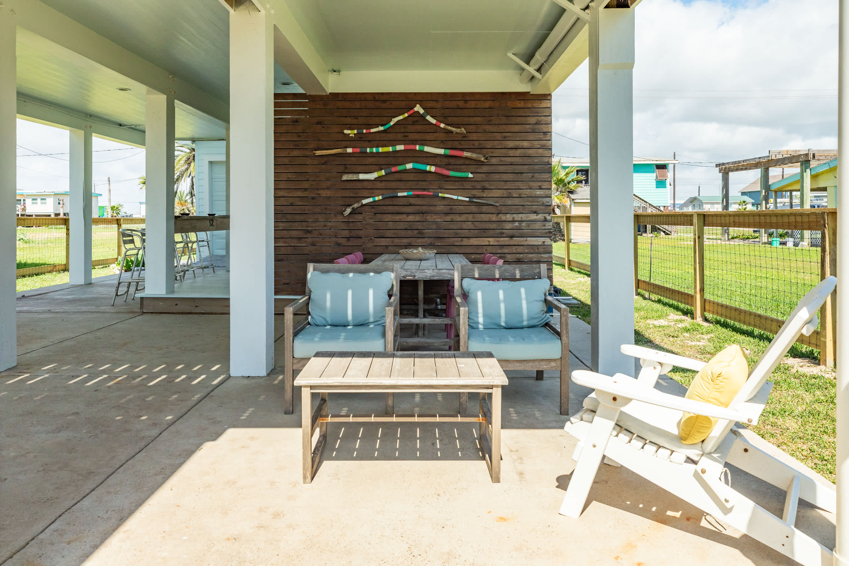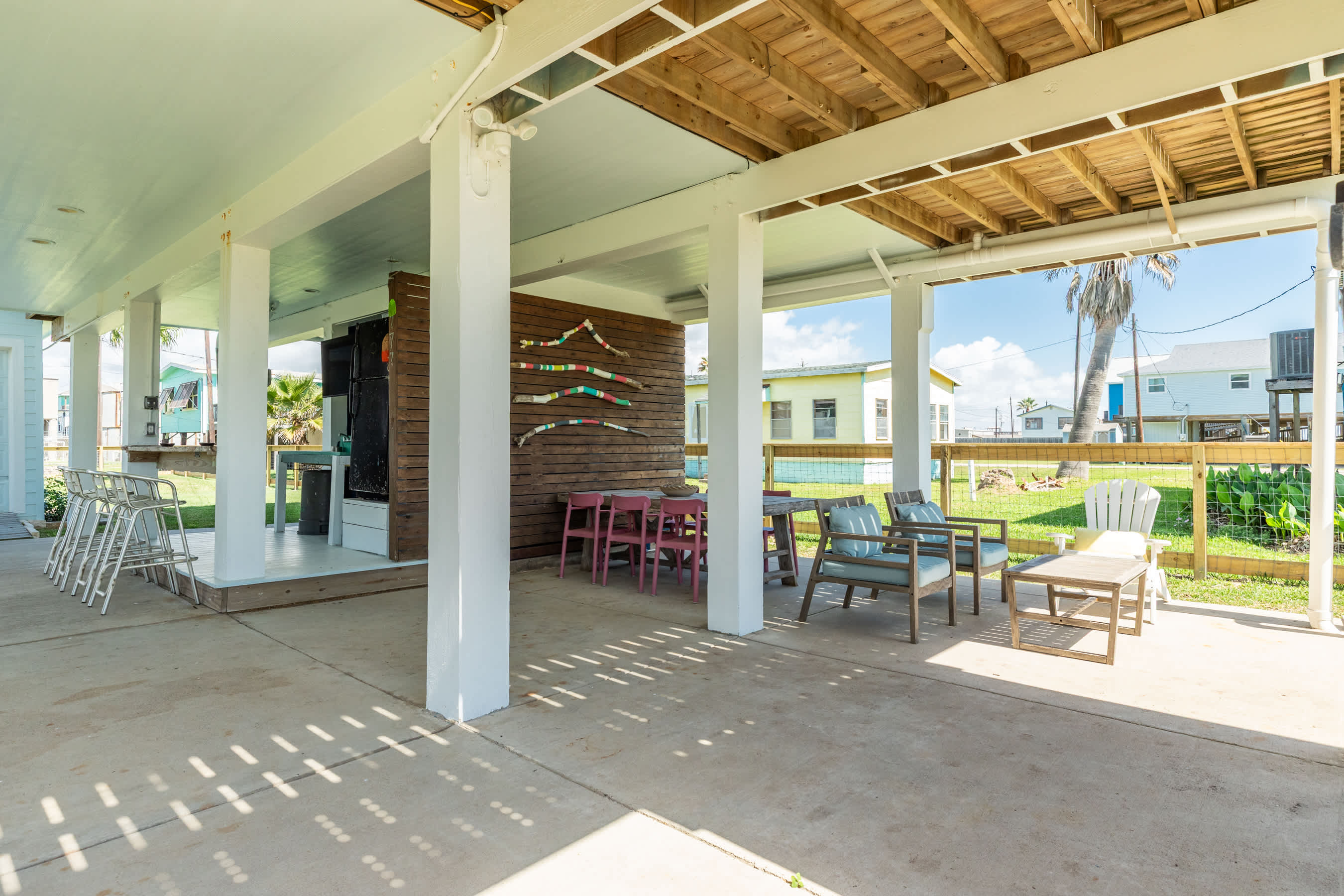 Welcome to Surf & Turf – where flip-flops are the dress code and every hour feels like happy hour! Sip something fruity at your own beach bar, feast under the stars with outdoor dining options galore, and take in those glorious seaside breezes from the covered front porch.
