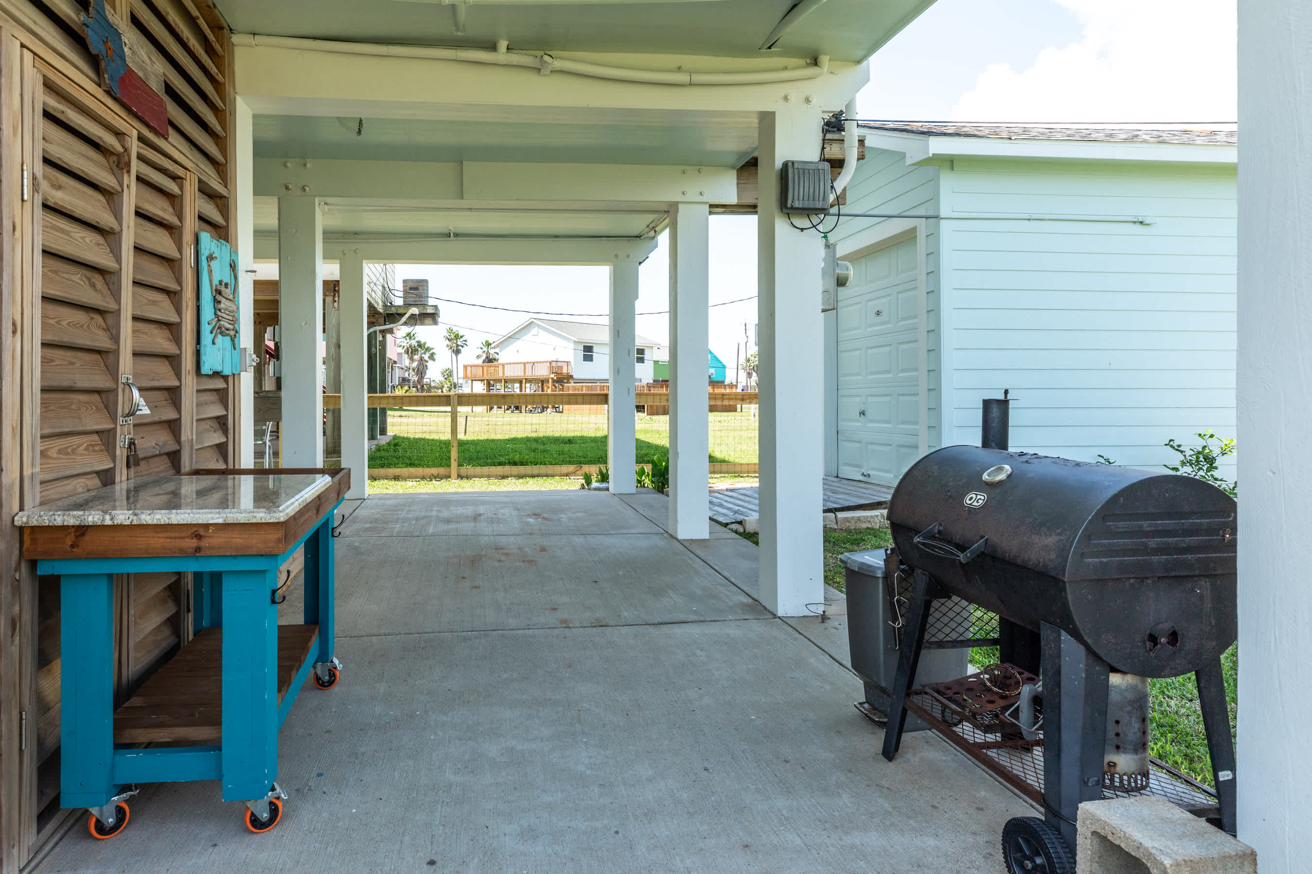 FEATURES/AMENITIES: fenced yard, charcoal grill, large covered porch, outdoor shower and beach bar, ceiling fans throughout inside, complimentary high-speed Internet/WIFI, laptop friendly, guest comforts of home welcome kit, all kitchen appliances plus washer and dryer, walking distance to the beach
