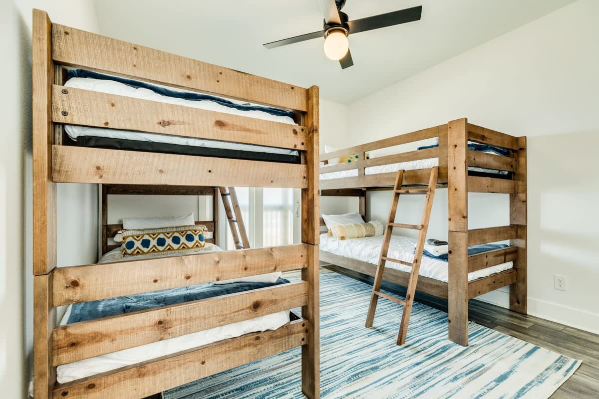 ~ Bunk Room/Bedroom 4: Upper level with 2 x Twin over Twin bunks, shared hall bath and door to upper deck