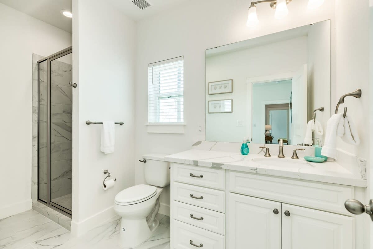 In the kitchen, you'll find, stainless steel appliances, Quartz countertops and plenty of space to prepare a gourmet meal for the group. Enjoy the open gathering area with large dining table, beautiful and comfortable couch seating, large SmartTV and 2 sliders to the huge deck.