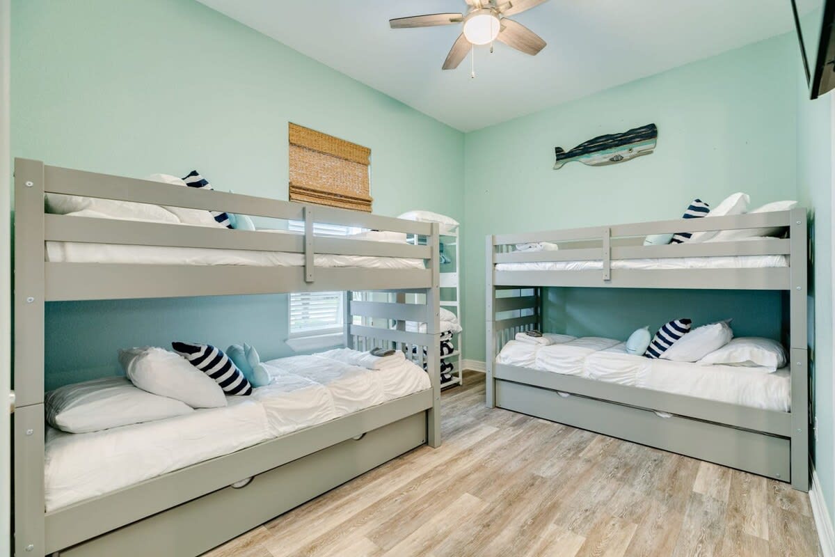 Bunk Room/Bedroom #4: 2 x Twin over Twin bunks each with Twin trundles and en suite full bath
