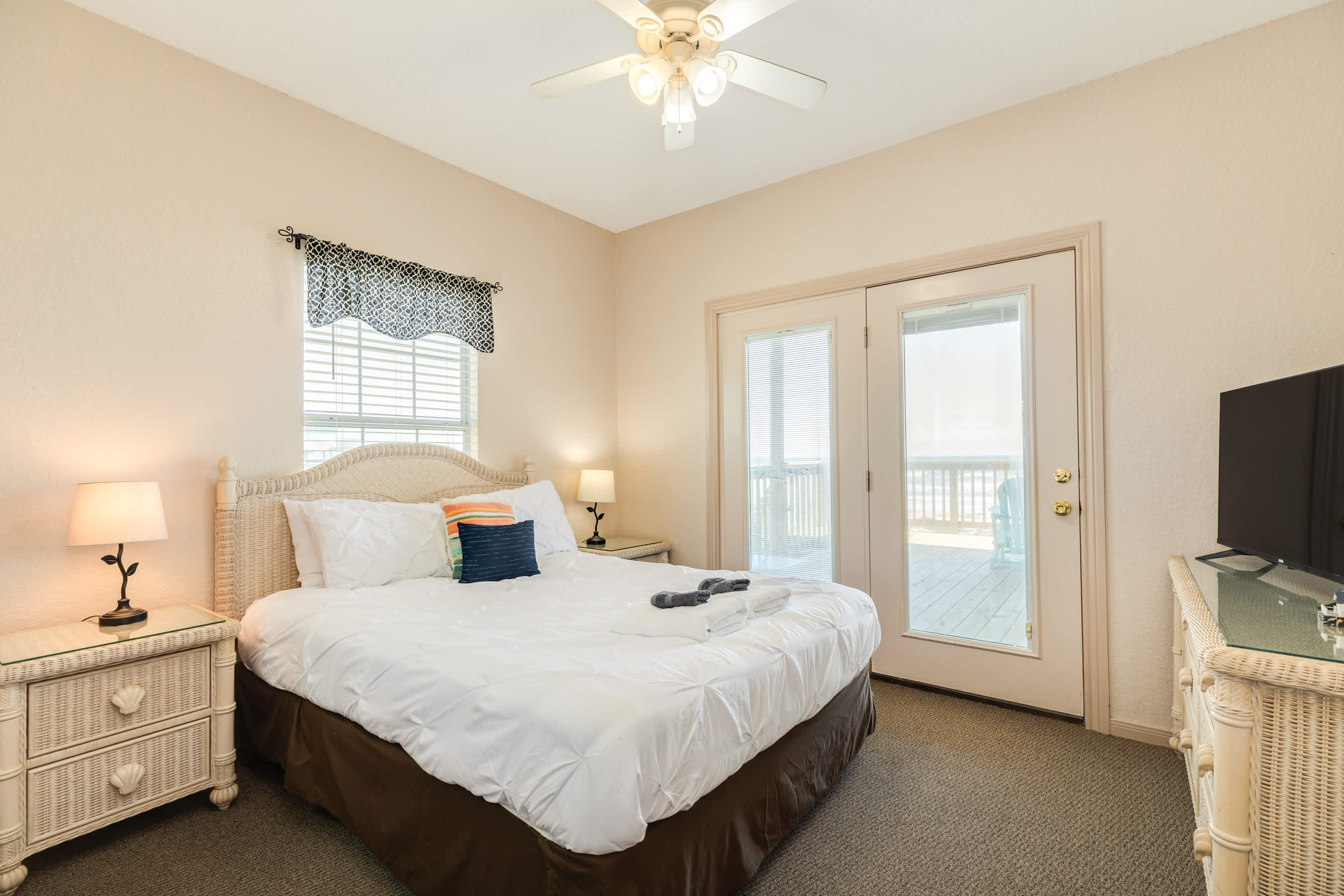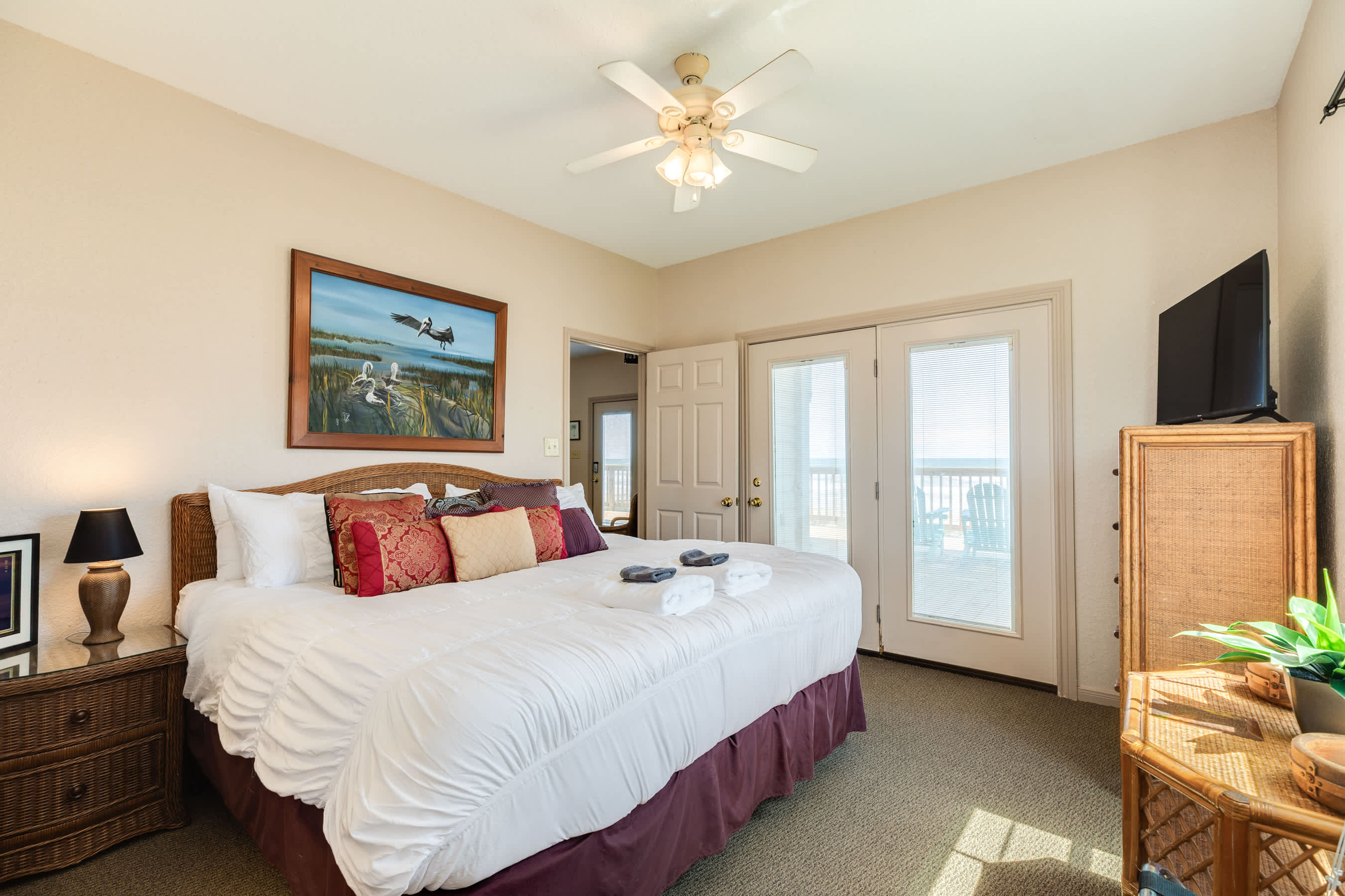 ~ Primary Bedroom: King bed with en suite bath (main-level, sleeps 2)