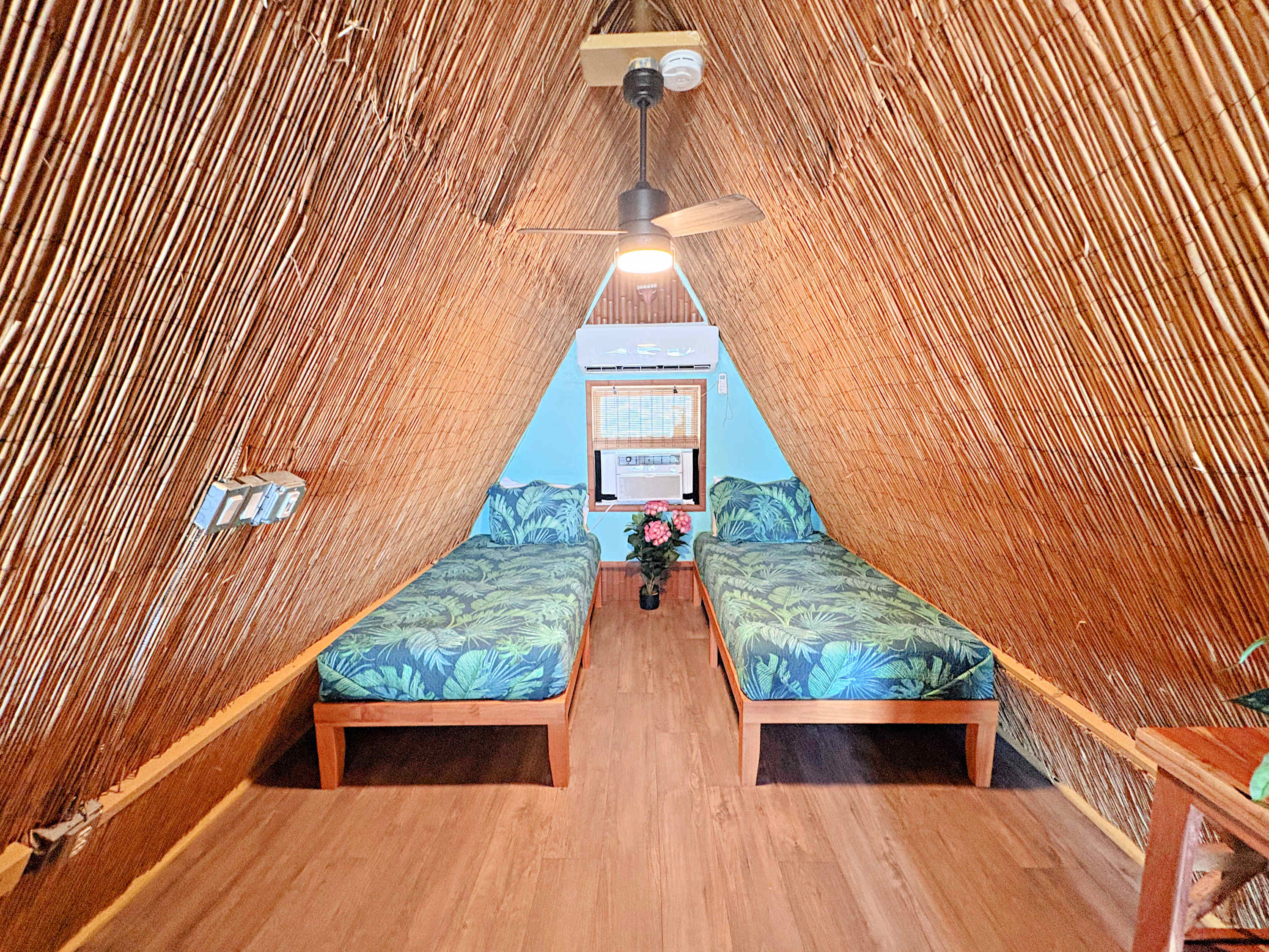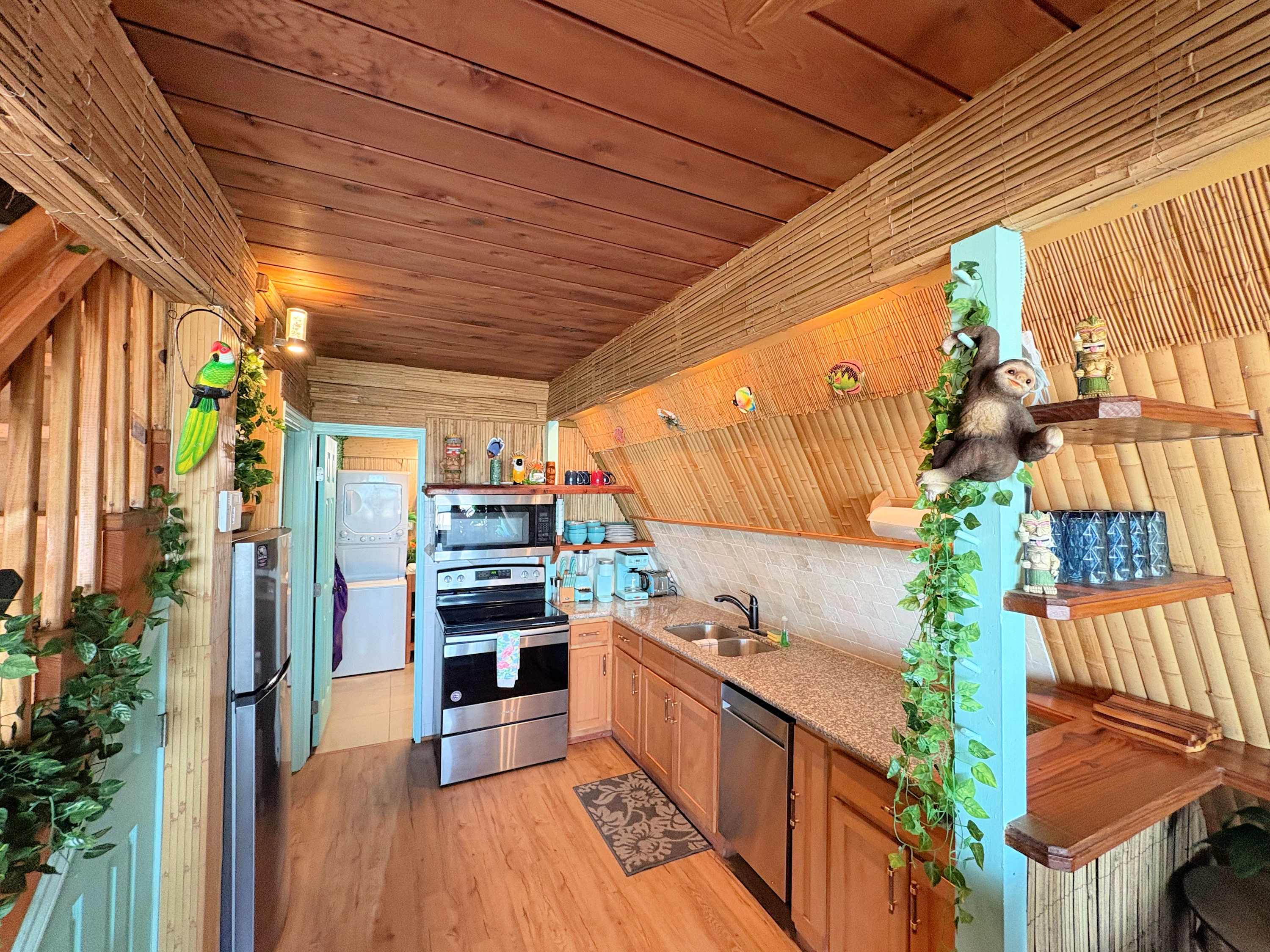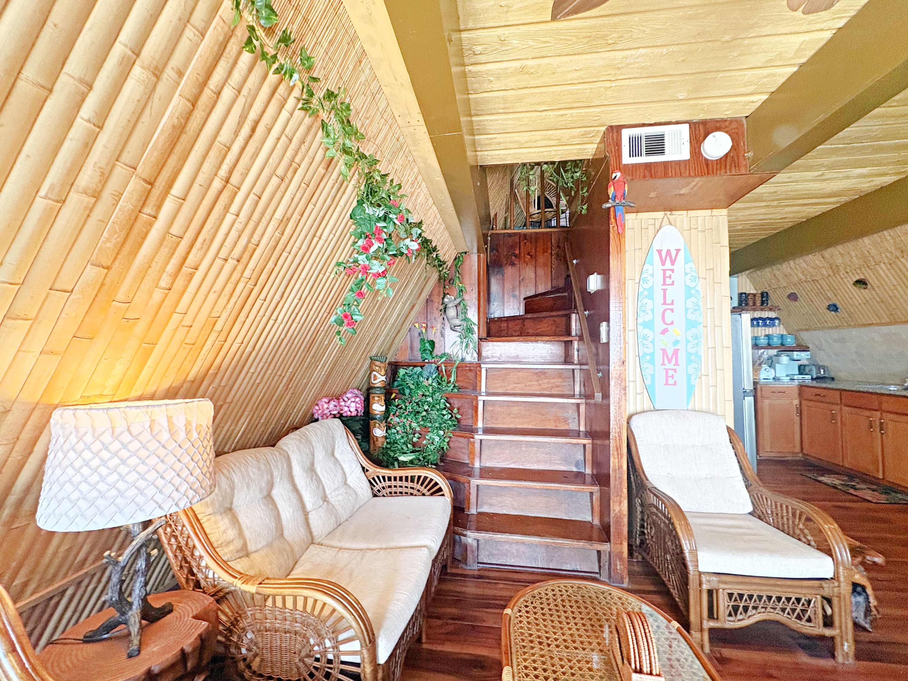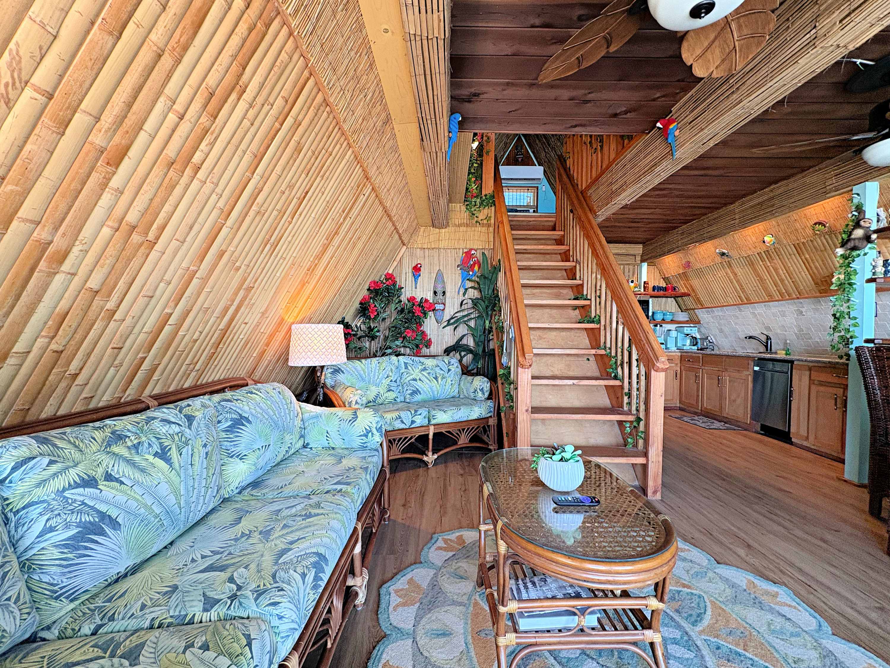Step into a pair of storybook A-frames where salt air drifts through the windows and time slows to the rhythm of the waves. The Polynesian leans into breezy island elegance with tropical textures and warm, sun-washed tones, while The Tiki Hut brings a playful, toes-in-the-sand vibe with fun coastal accents and relaxed charm.